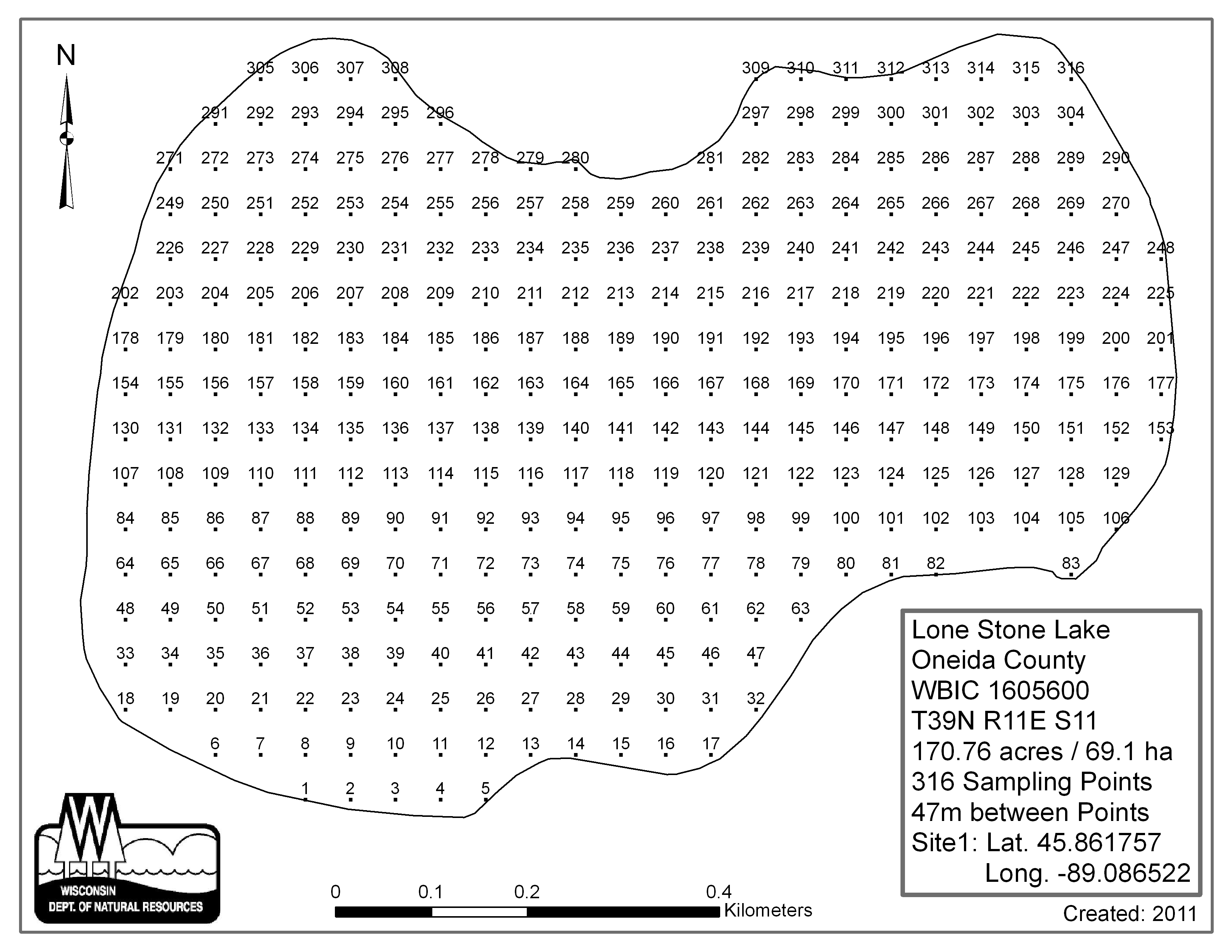 Lone Stone Lake, Oneida County - Aquatic Plant Sampling Map (47 mpts)
