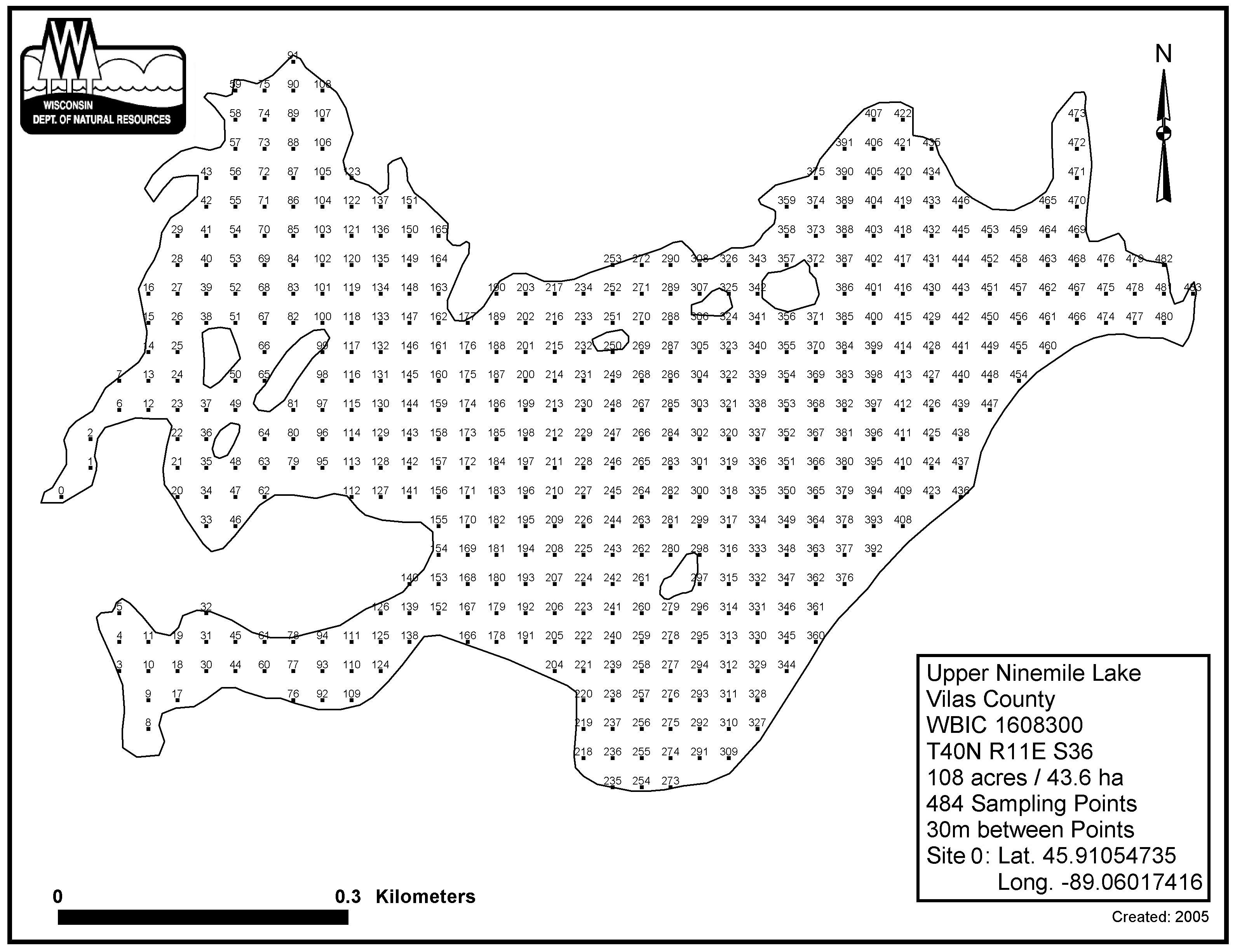 Upper Ninemile Lake, Vilas/Forest County - Aquatic Plant Sampling Map (30 mpts)