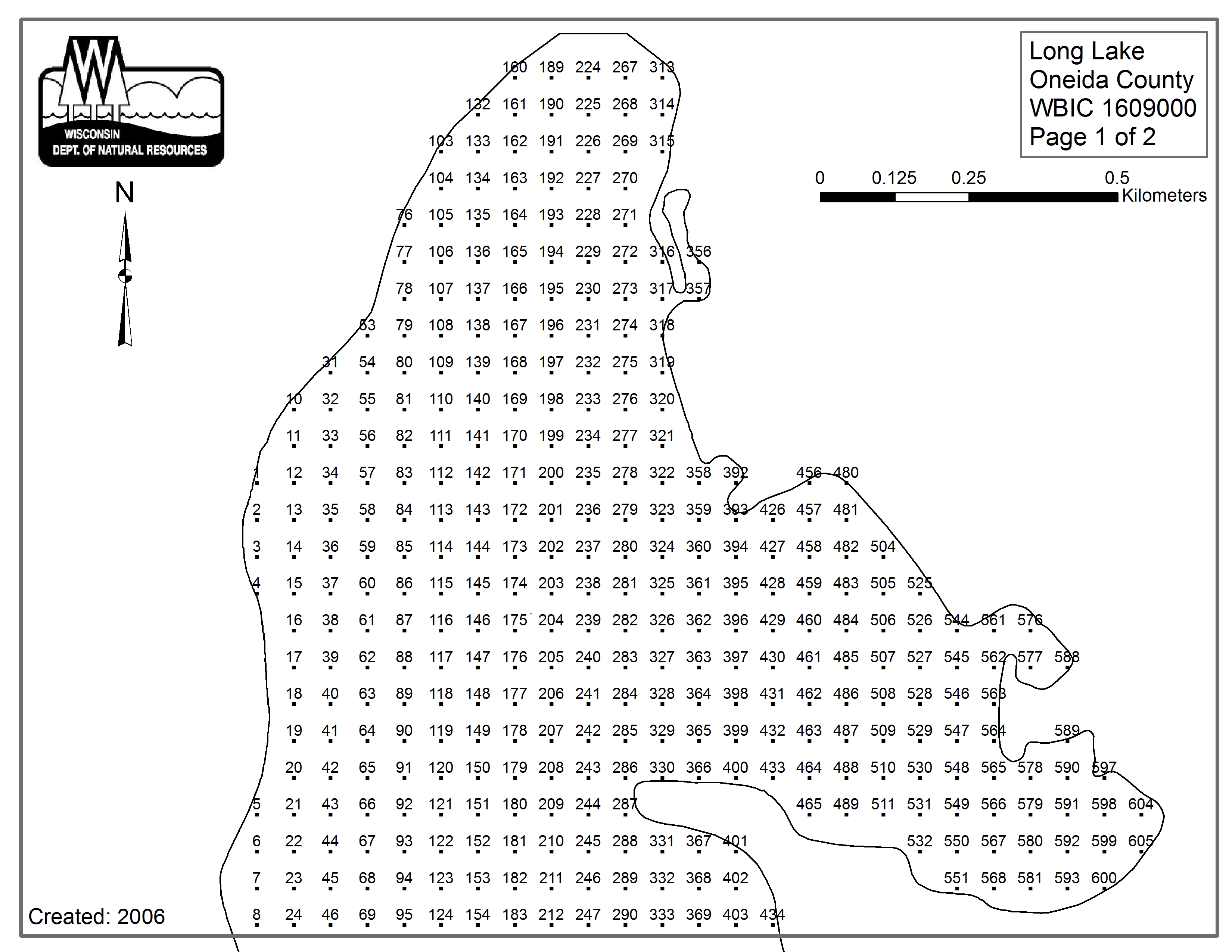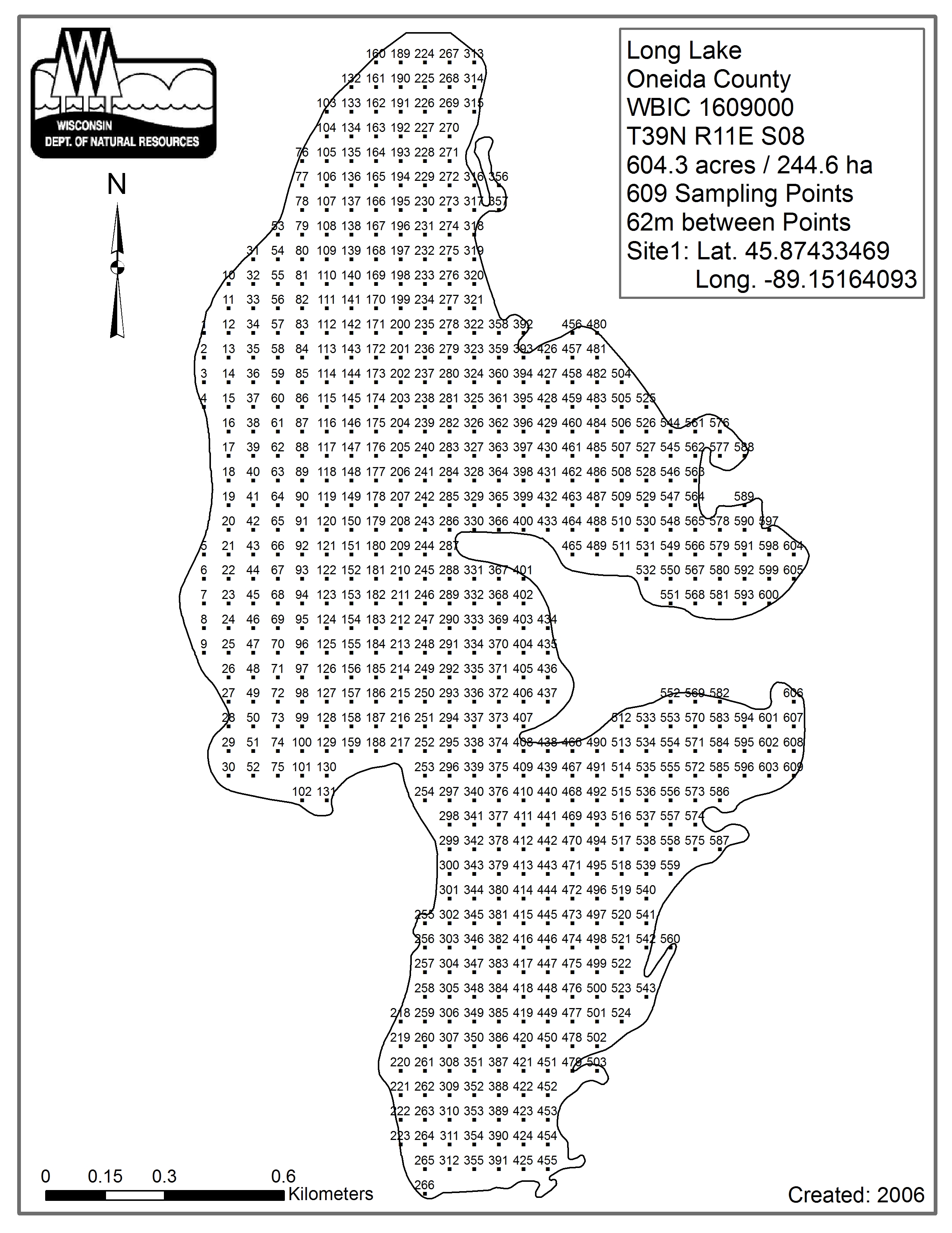 Long Lake, Oneida County (1609000) - Aquatic Plant Sampling Map (1)(62 mpts)