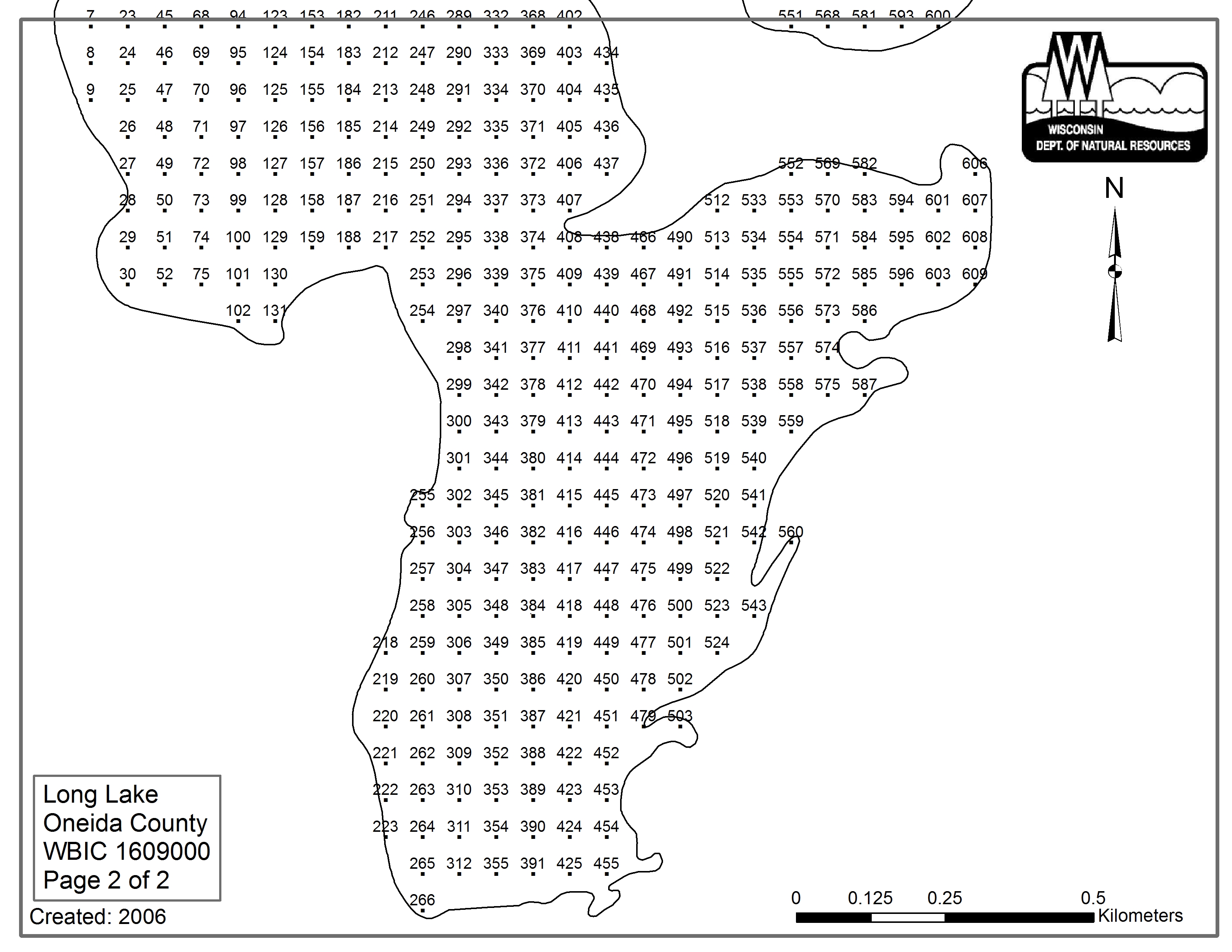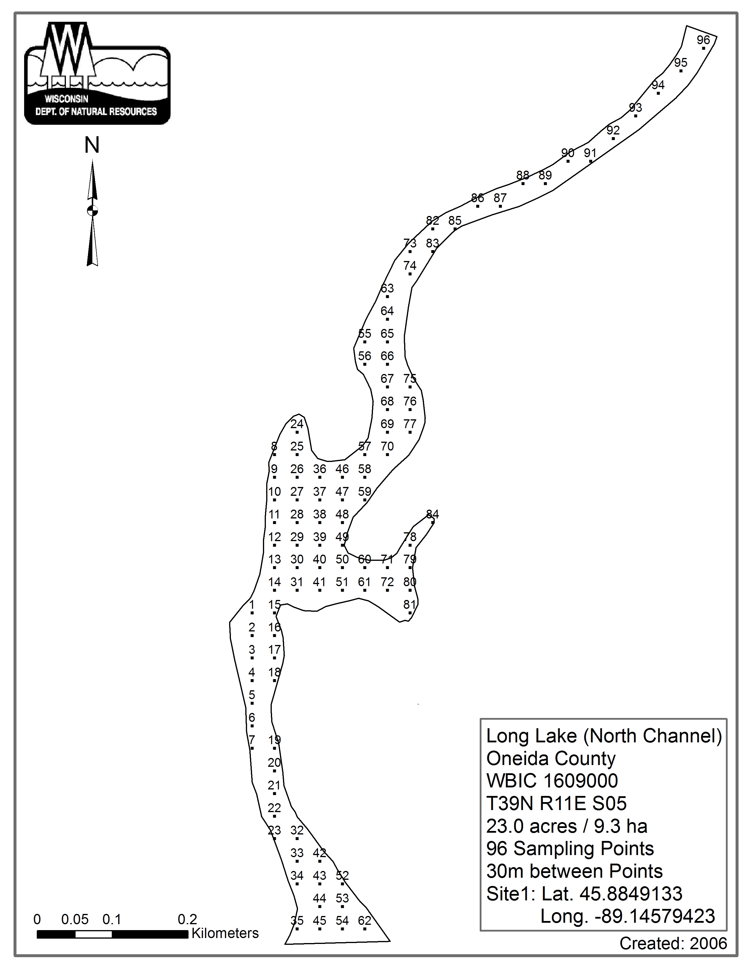 Long Lake (North Channel), Oneida County - Aquatic Plant Sampling Map (30 mpts)