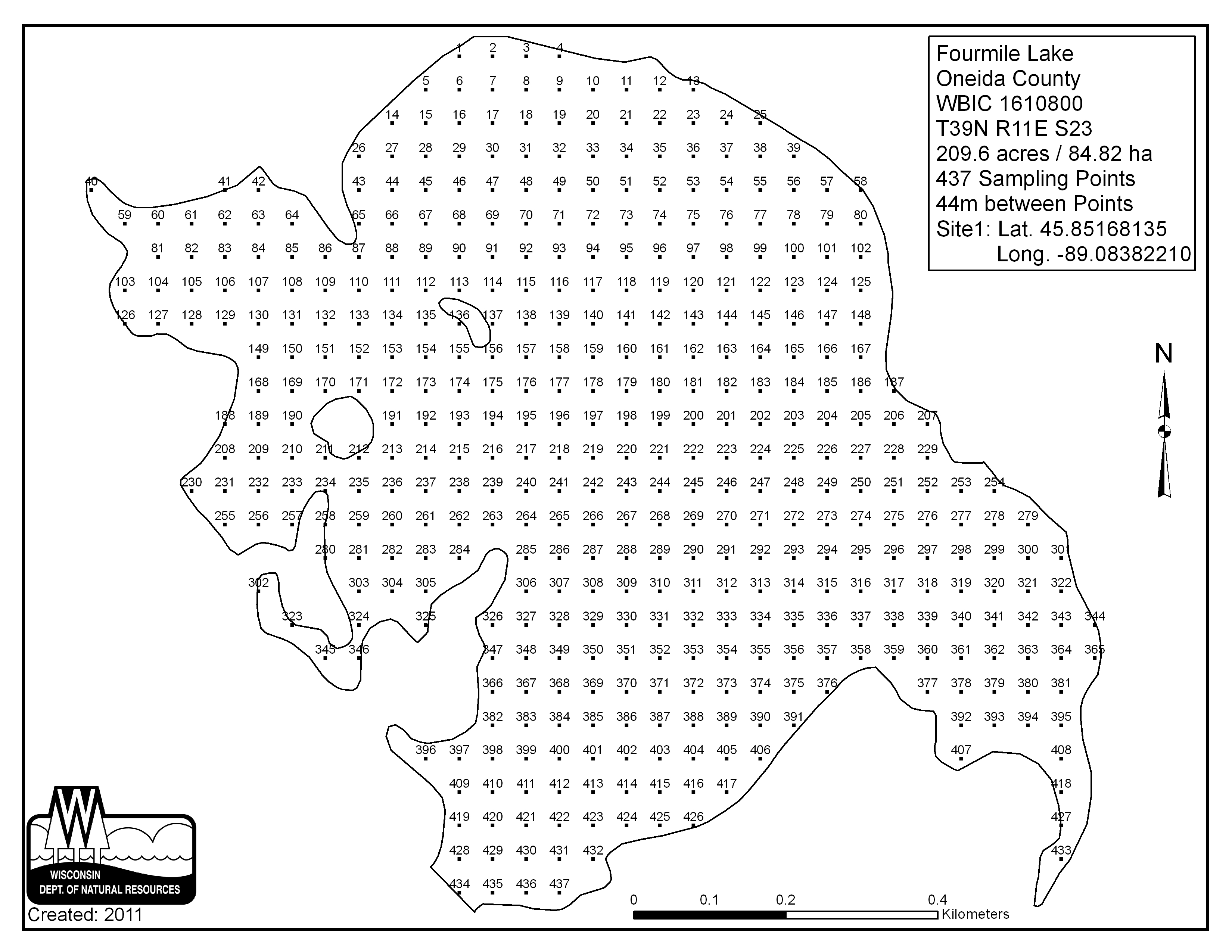Fourmile Lake, Oneida County - Aquatic Plant Sampling Map (44 mpts)