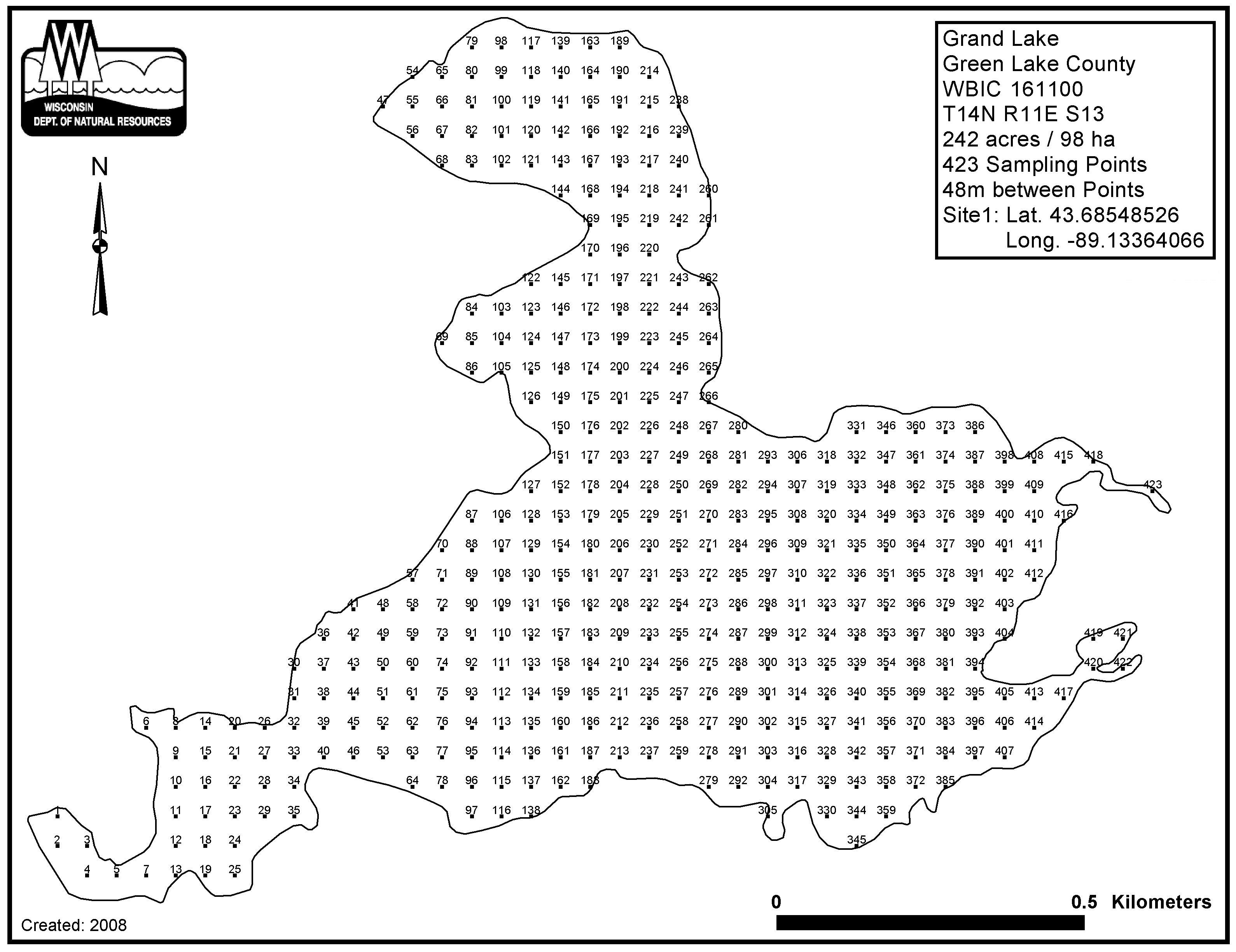 Grand Lake (Millpond), Green Lake County - Aquatic Plant Sampling Map (48 mpts)