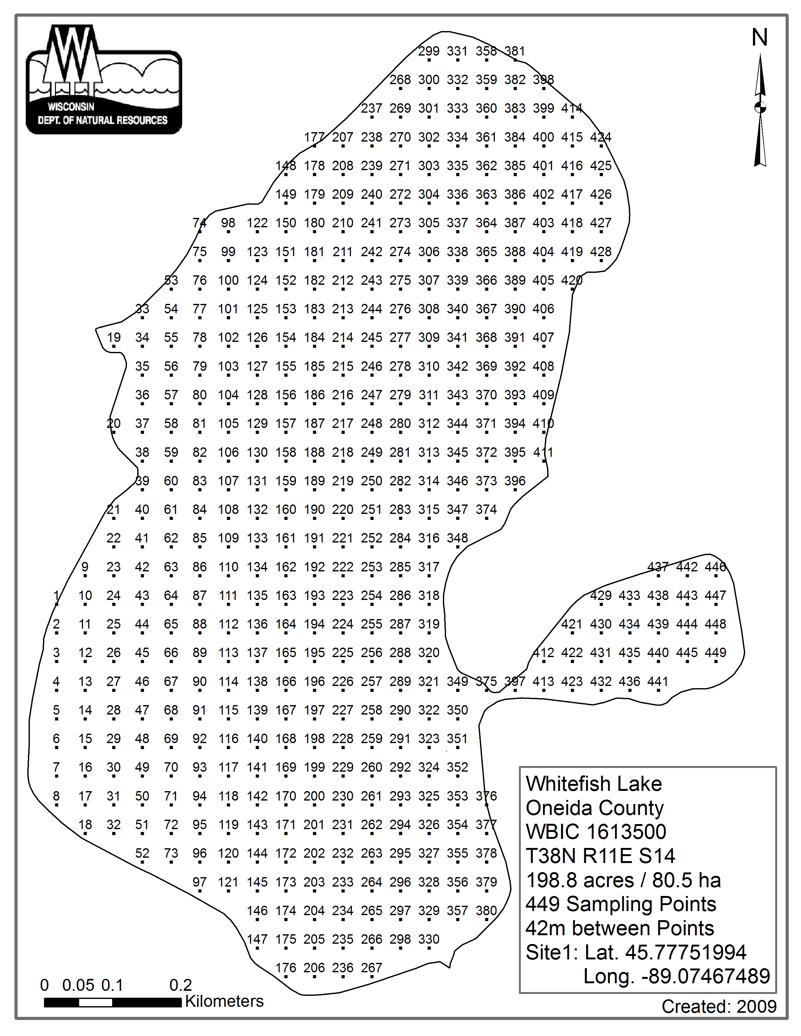 Whitefish Lake, Oneida County - Aquatic Plant Sampling Map (42 mpts)