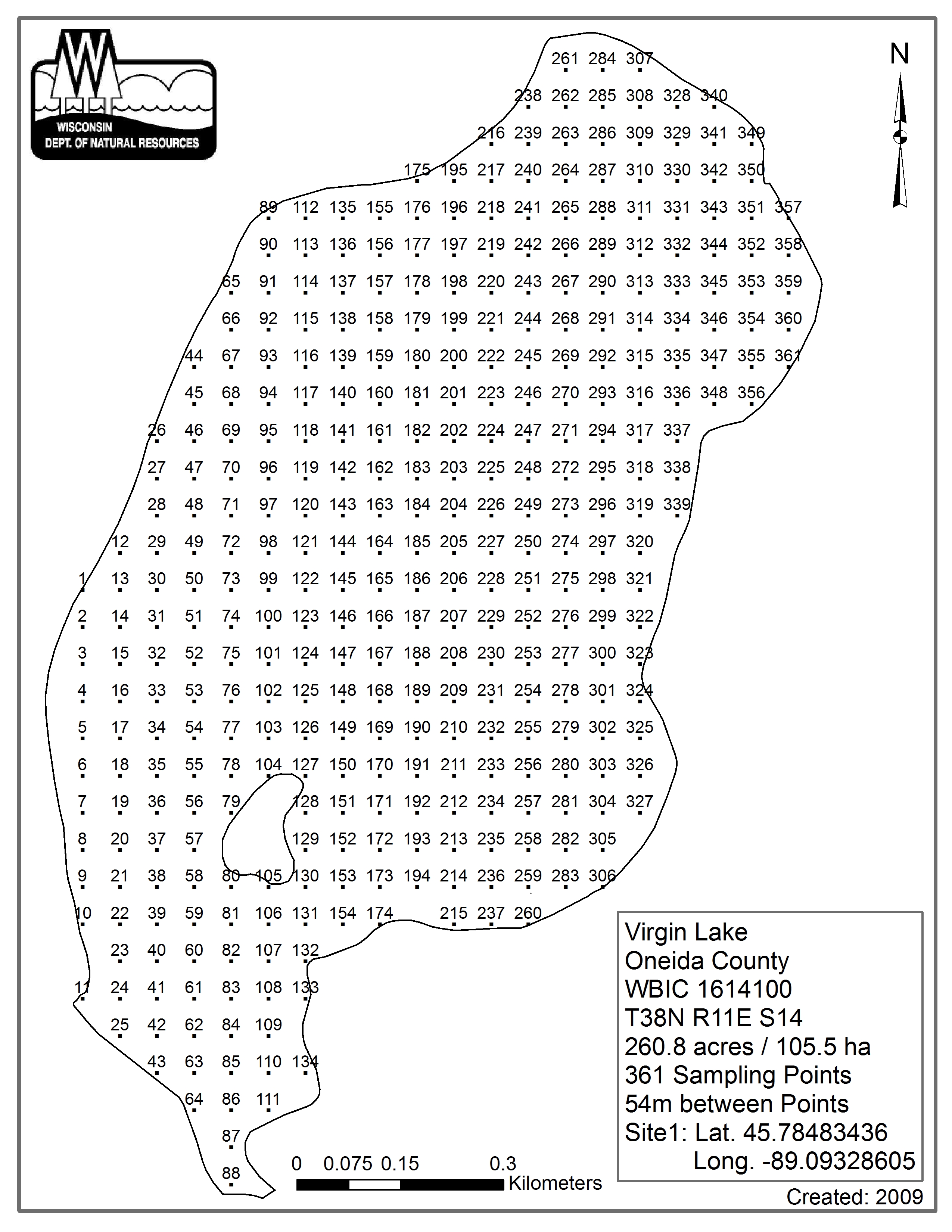 Virgin Lake, Oneida County - Aquatic Plant Sampling Map (54 mpts)