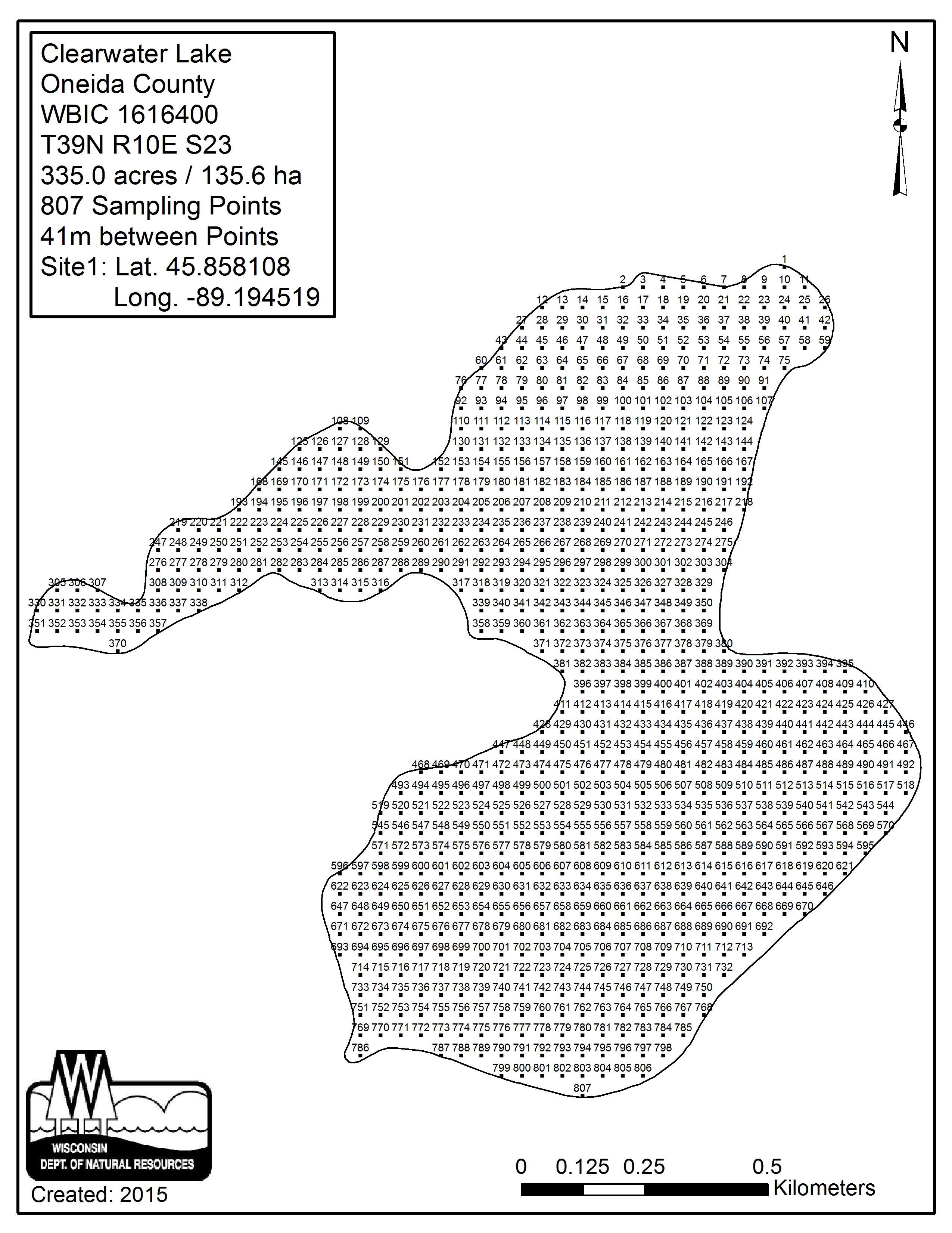 Clearwater Lake, Oneida County - Aquatic Plant Sampling Map (41 mpts)