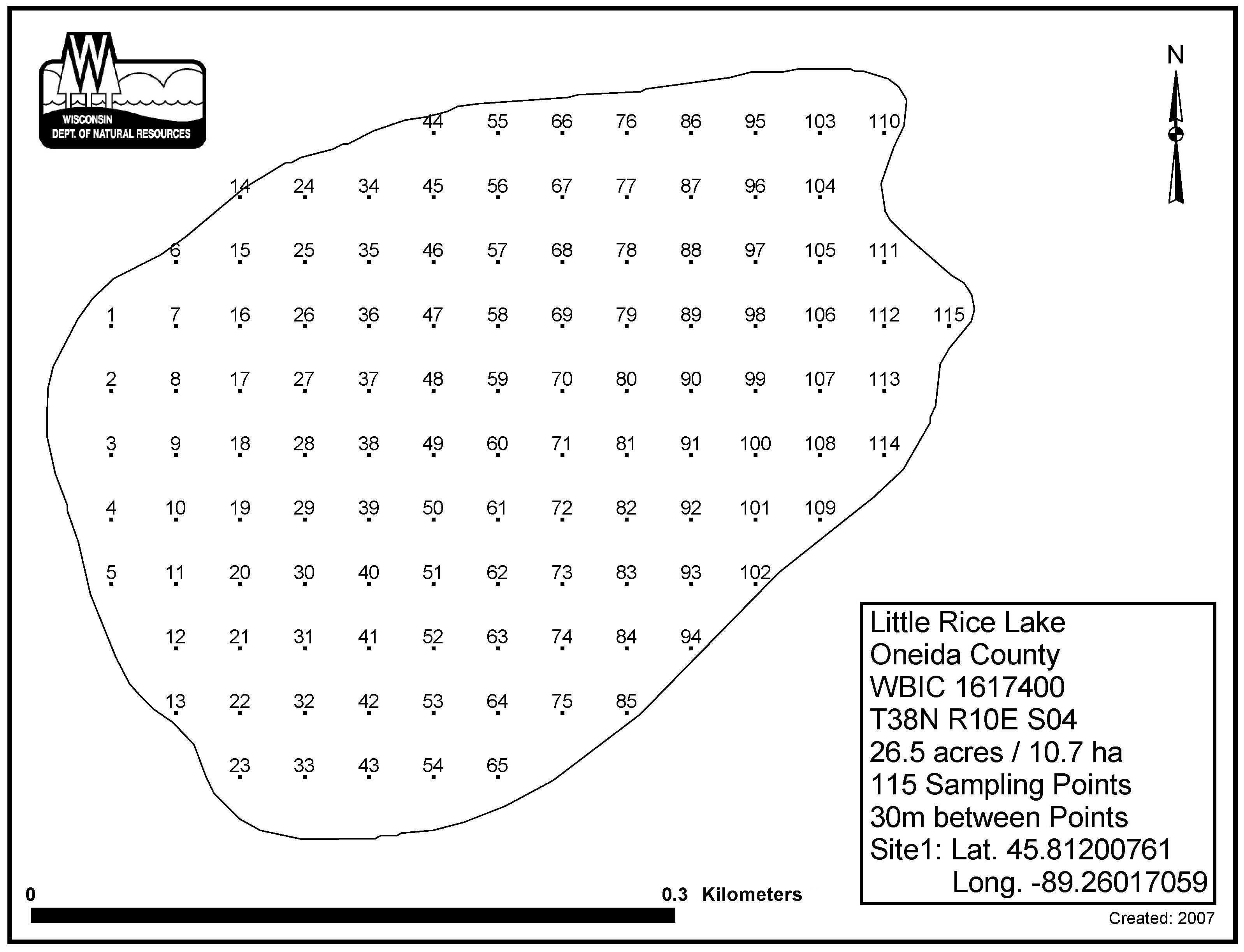 Little Rice Lake, Oneida County - Aquatic Plant Sampling Map (30 mpts)