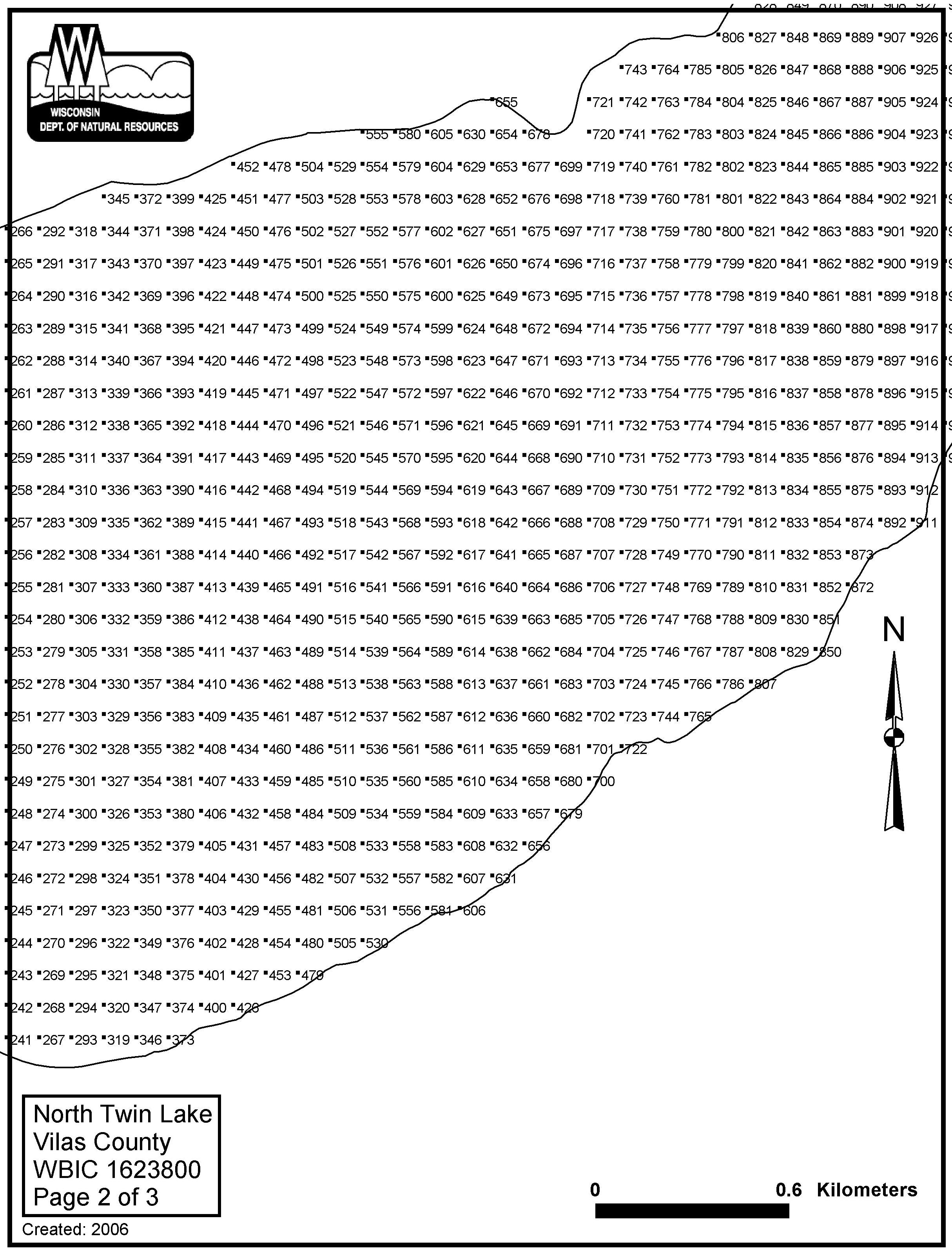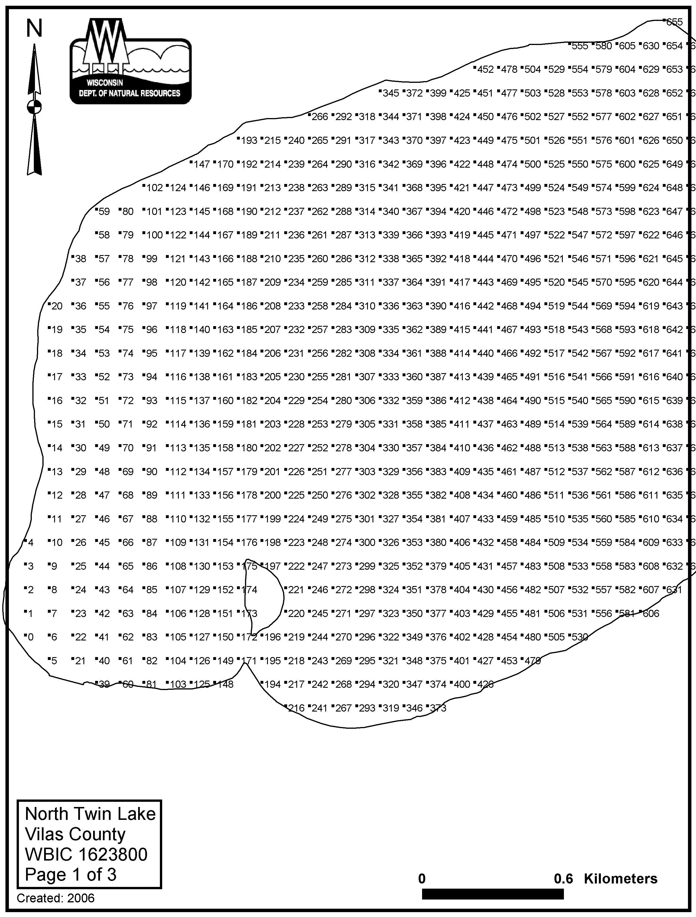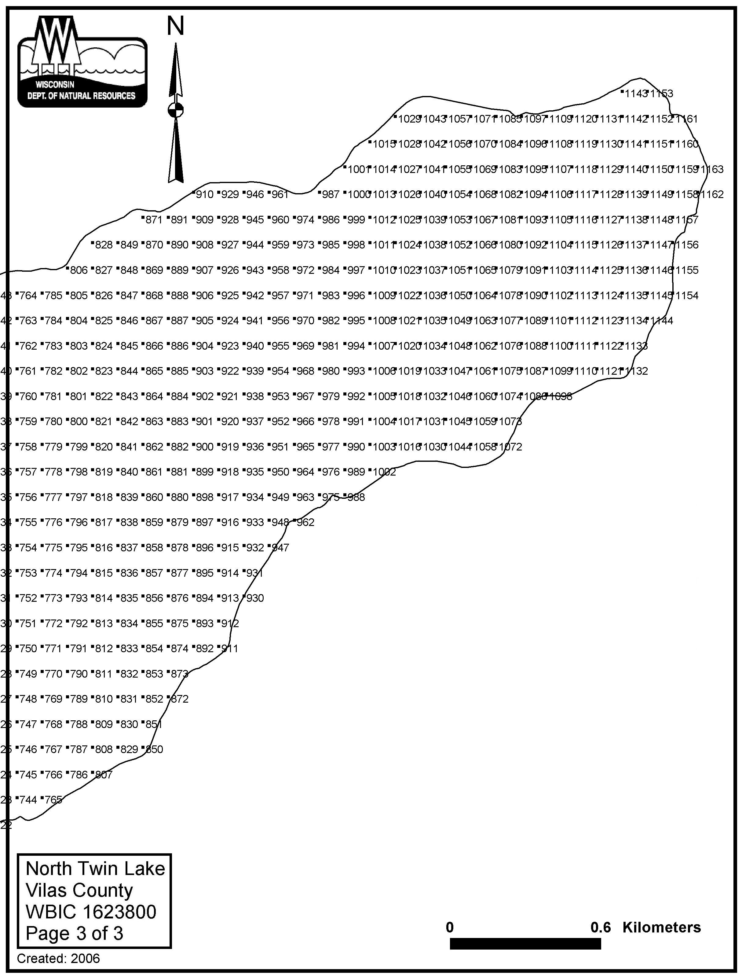 North Twin Lake, Vilas County - Aquatic Plant Sampling Map (3)(100 mpts)