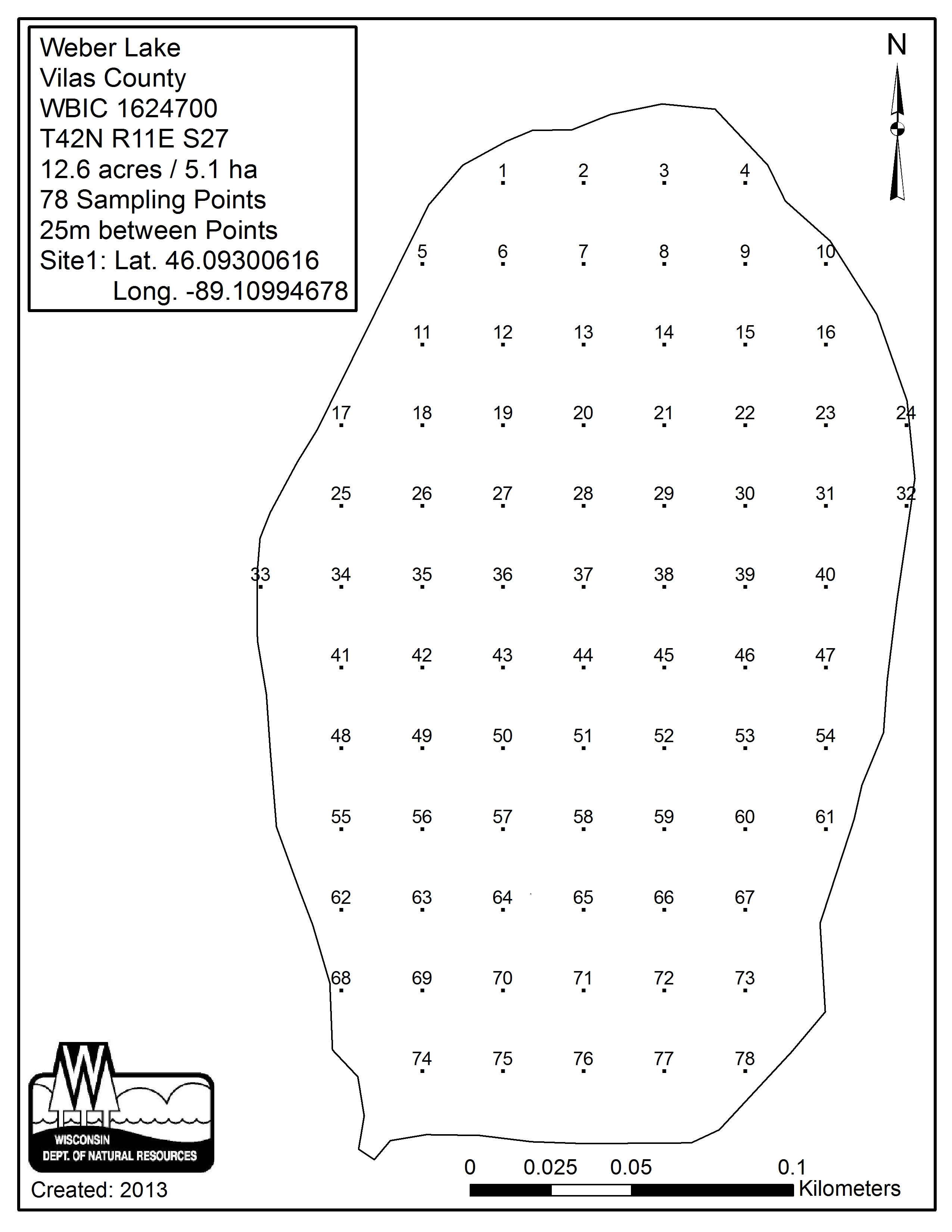 Weber Lake, Vilas County - Aquatic Plant Sampling Map (25 mpts)