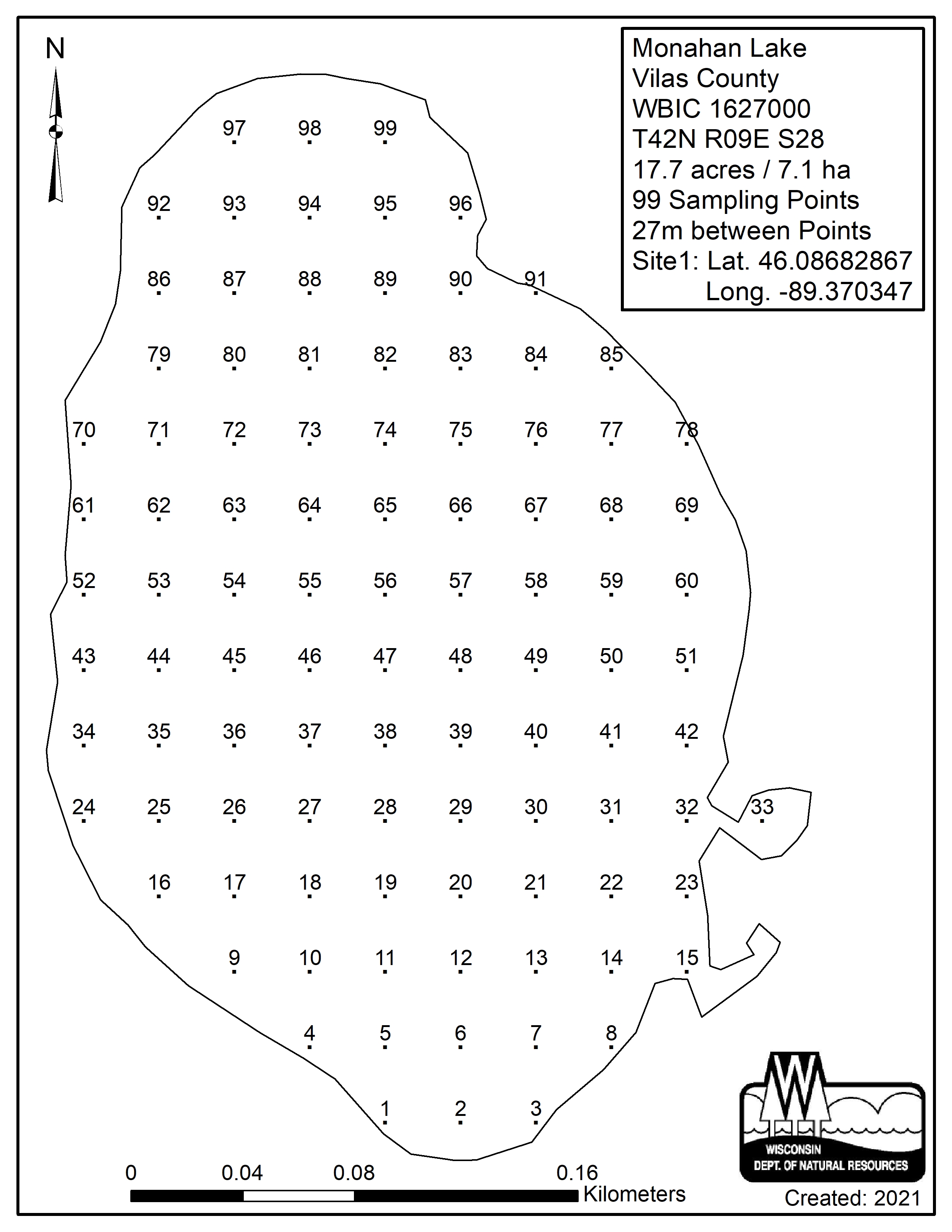 Monahan Lake, Vilas County - Aquatic Plant Sampling Map (27 mpts)