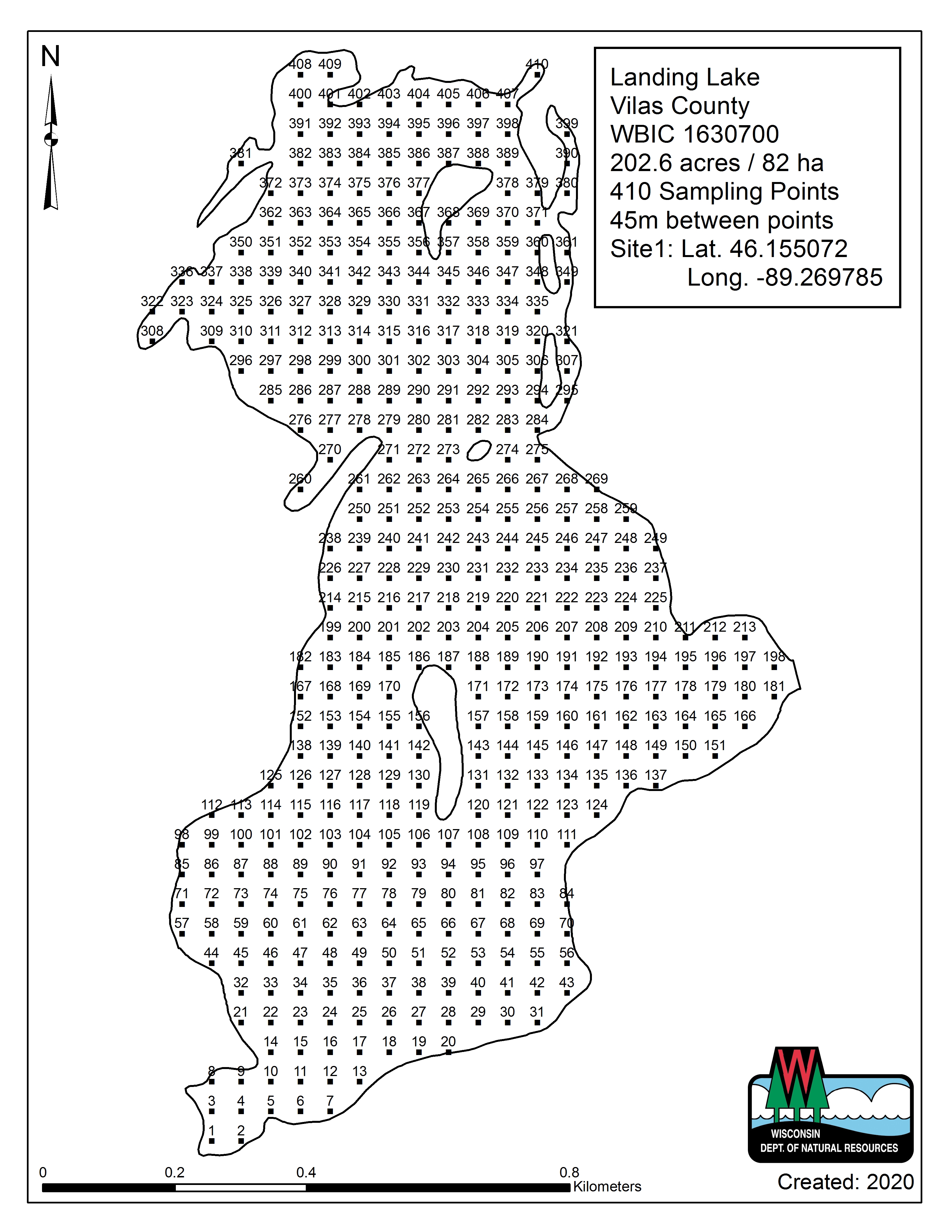 Landing Lake, Vilas County - Aquatic Plant Sampling Map (45 mpts)