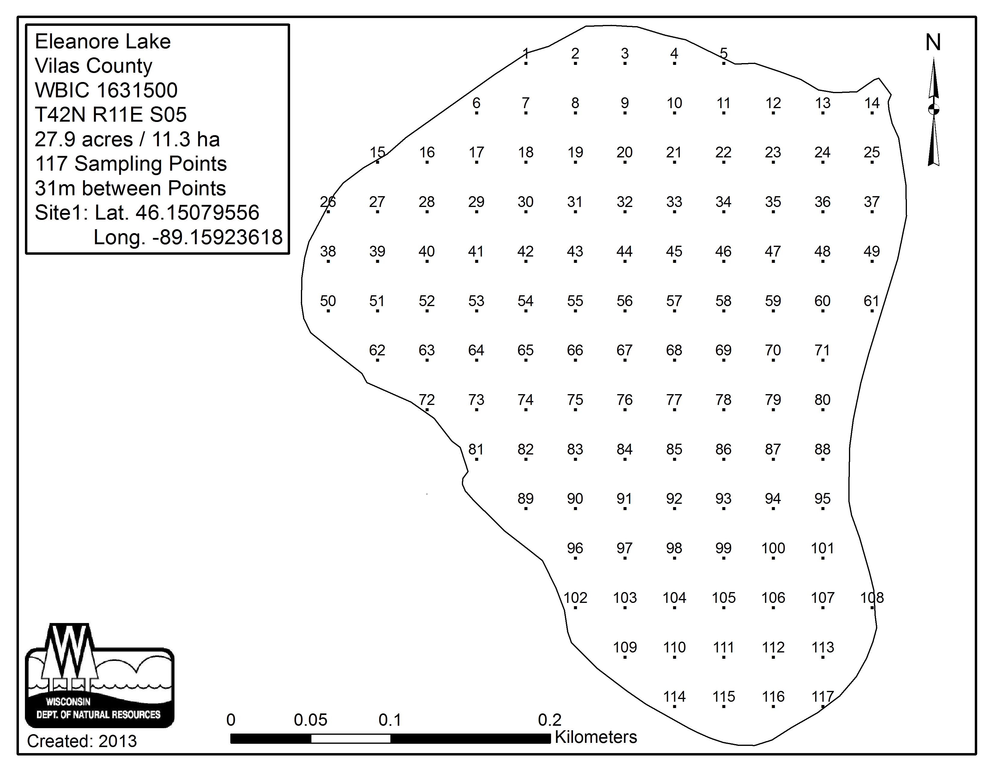 Eleanore Lake, Vilas County - Aquatic Plant Sampling Map (31 mpts)