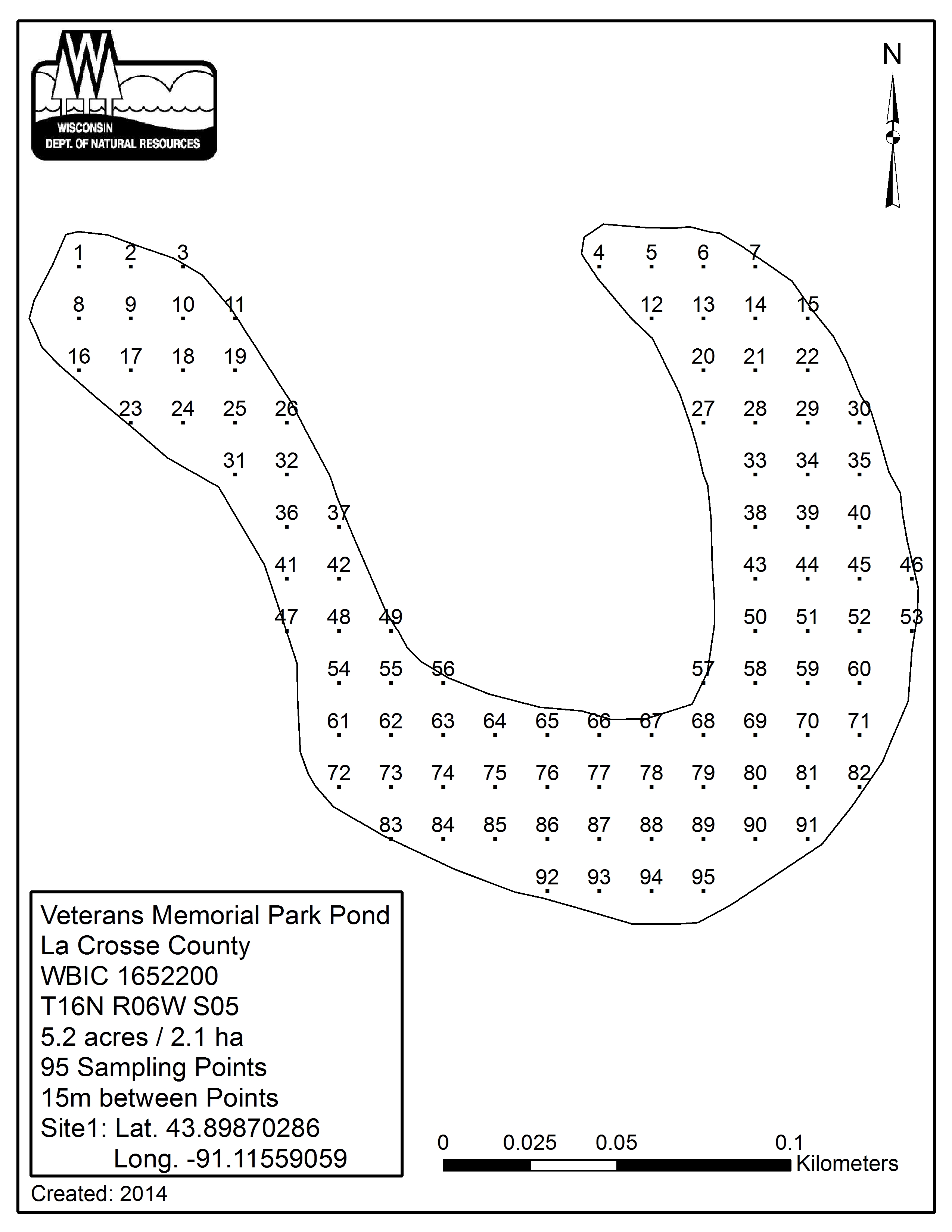 Veterans Memorial Park Pond, La Crosse County - Aquatic Plant Sampling Map (15 mpts)
