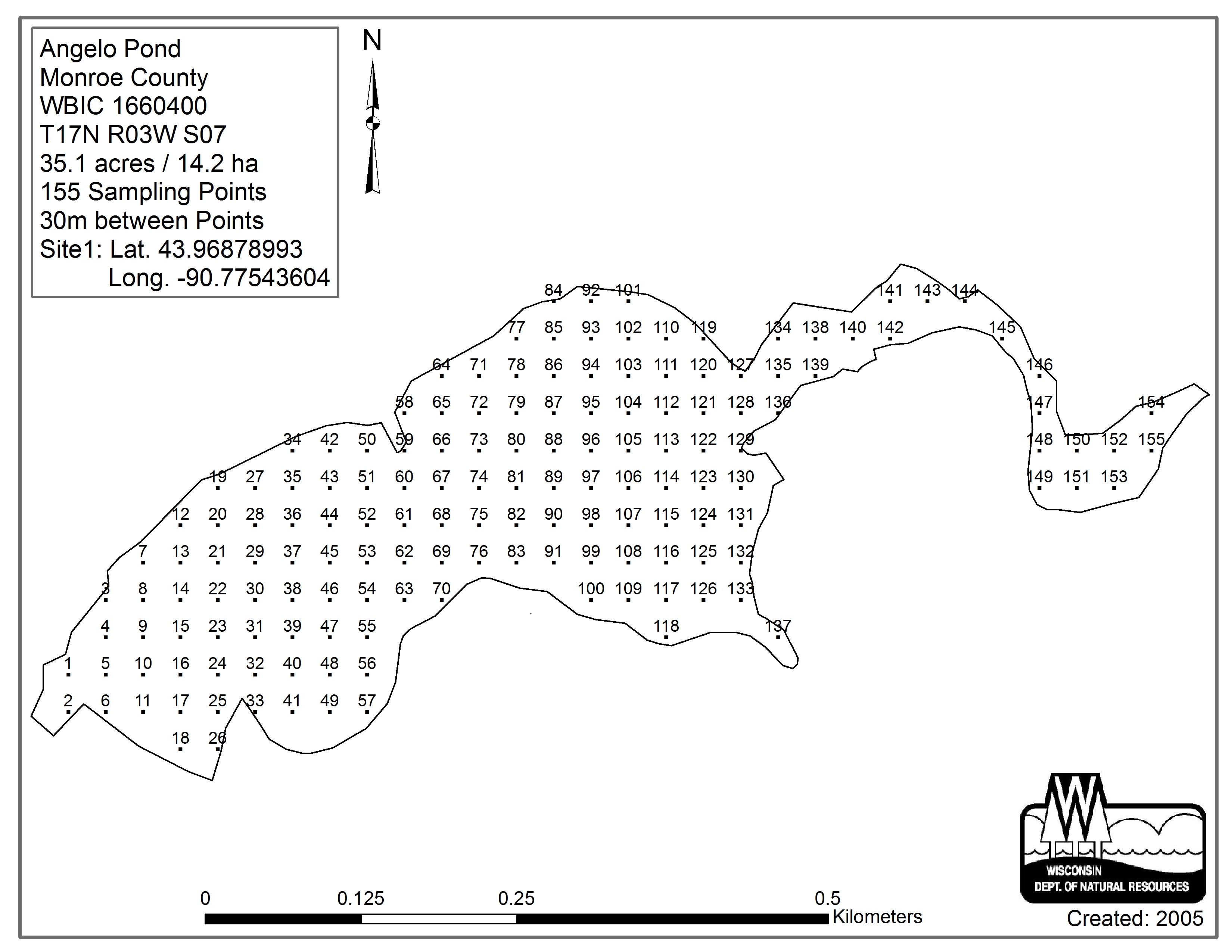 Angelo Pond, Monroe County - Aquatic Plant Sampling Map (30 mpts)
