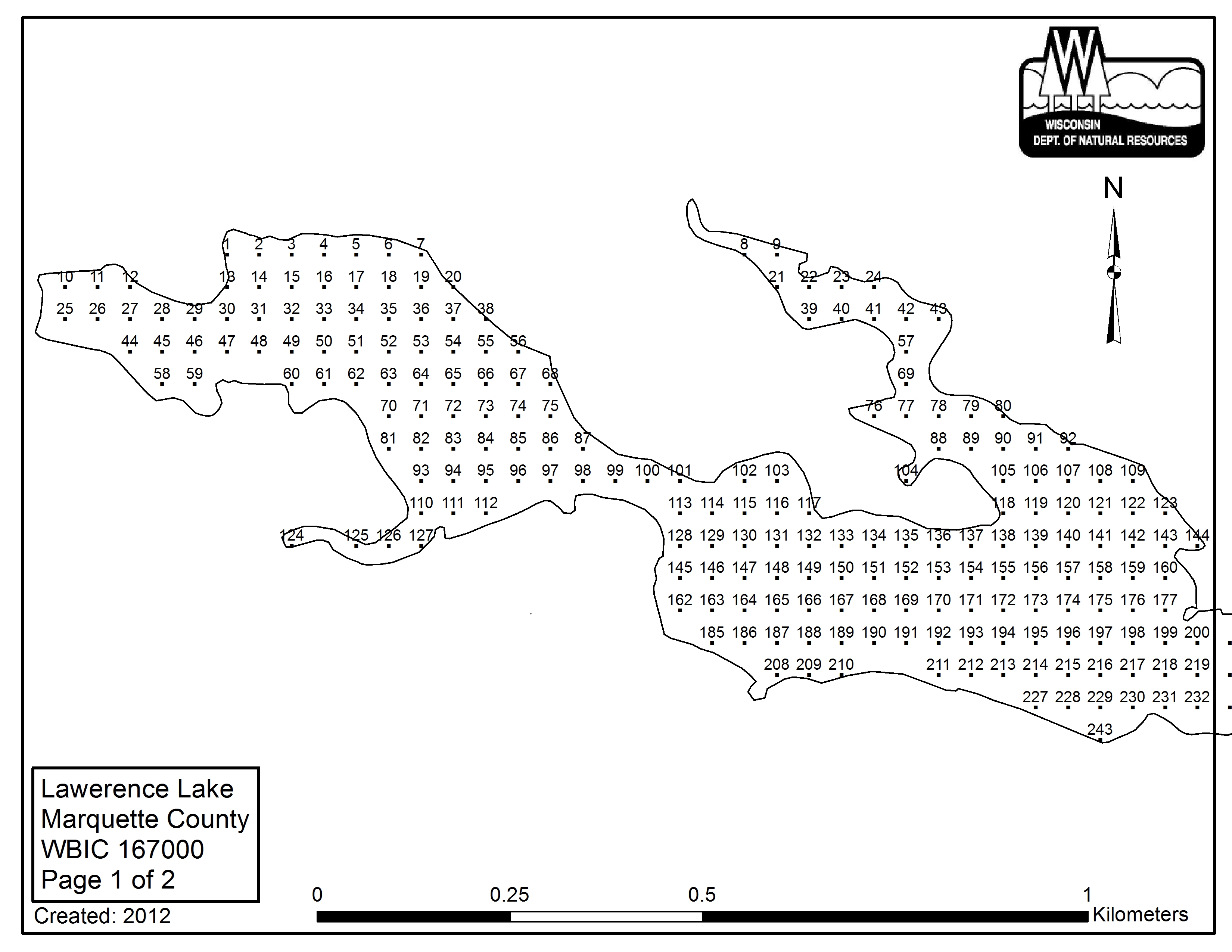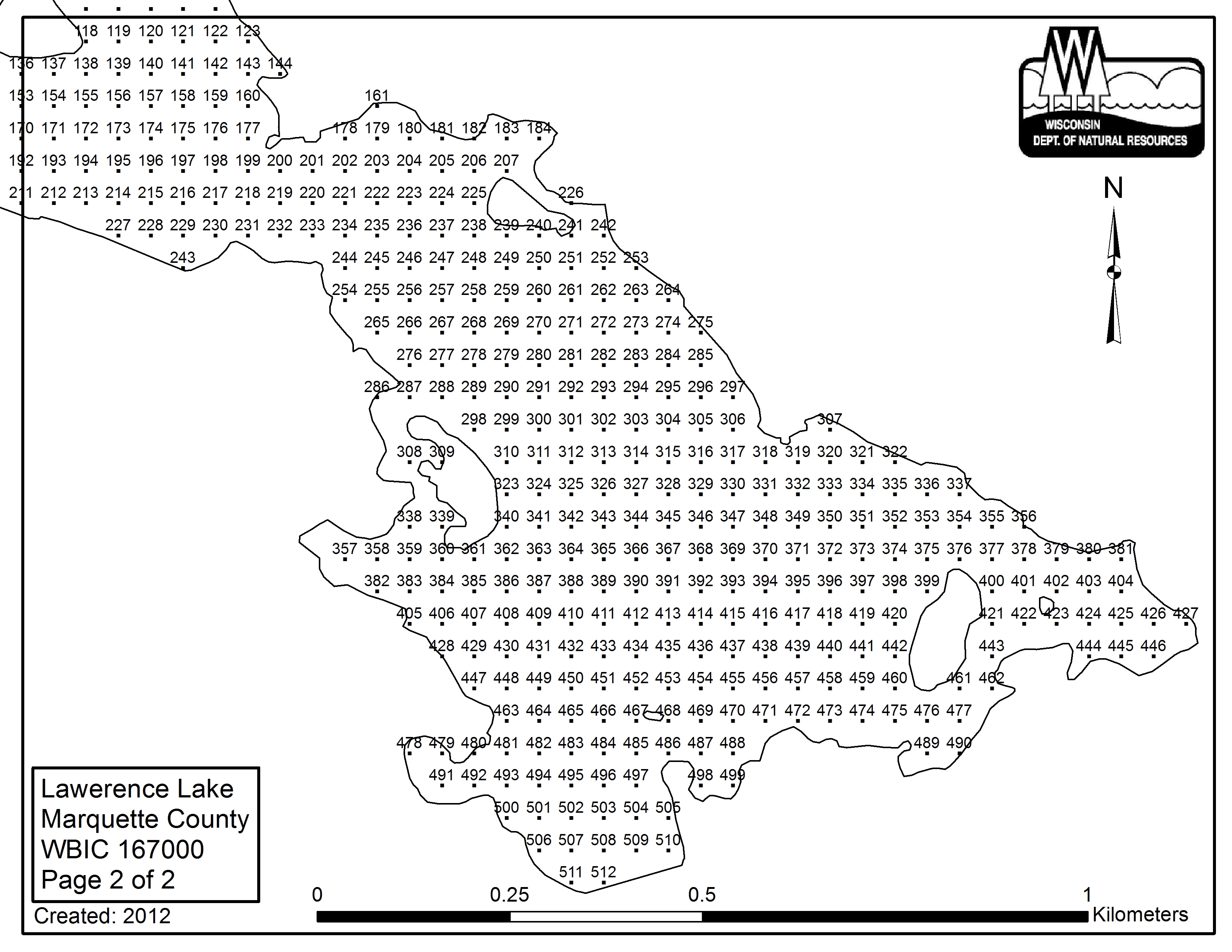 Lawrence Lake, Marquette County - Aquatic Plant Sampling Map (2)(42 mpts)