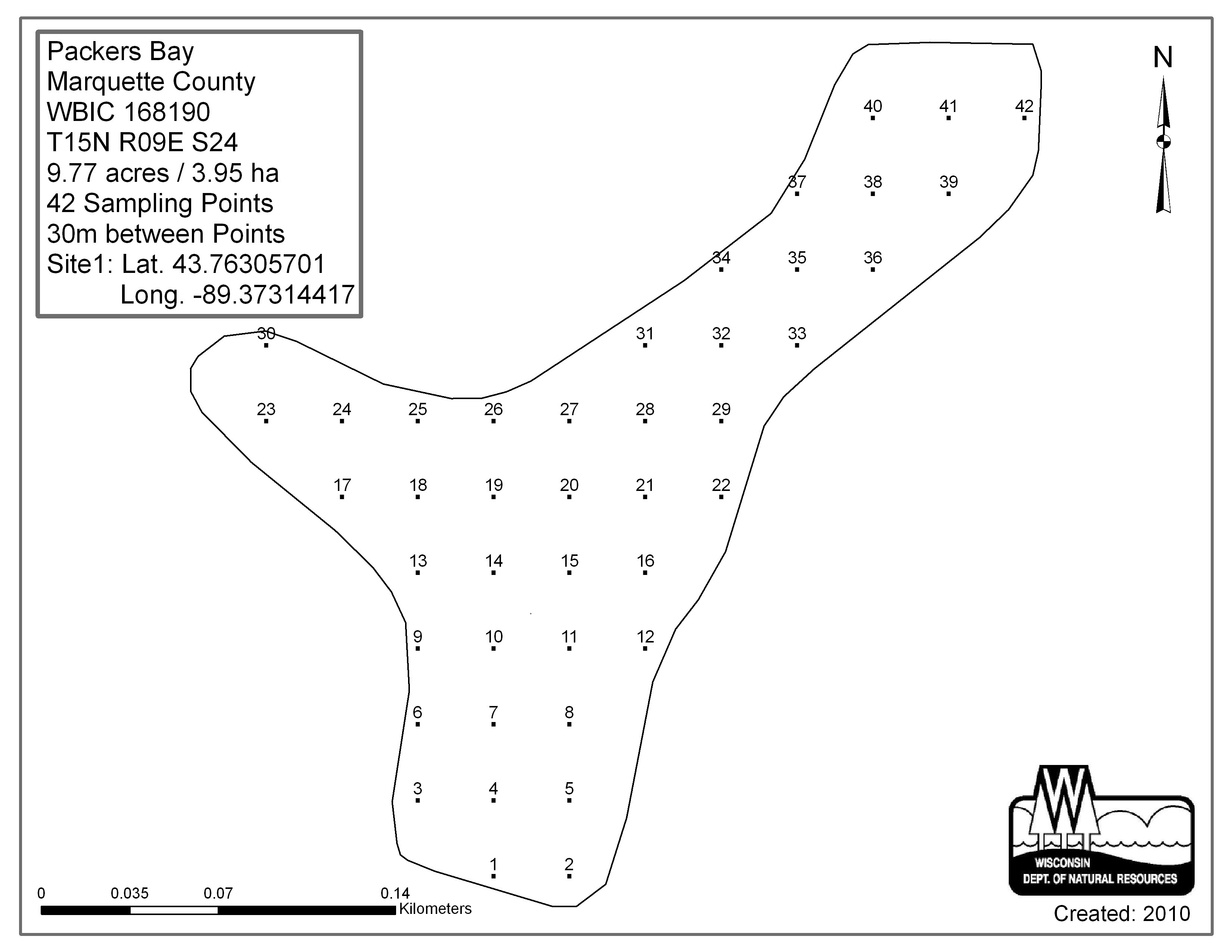 Packers Bay, Marquette County - Aquatic Plant Sampling Map (30 mpts)