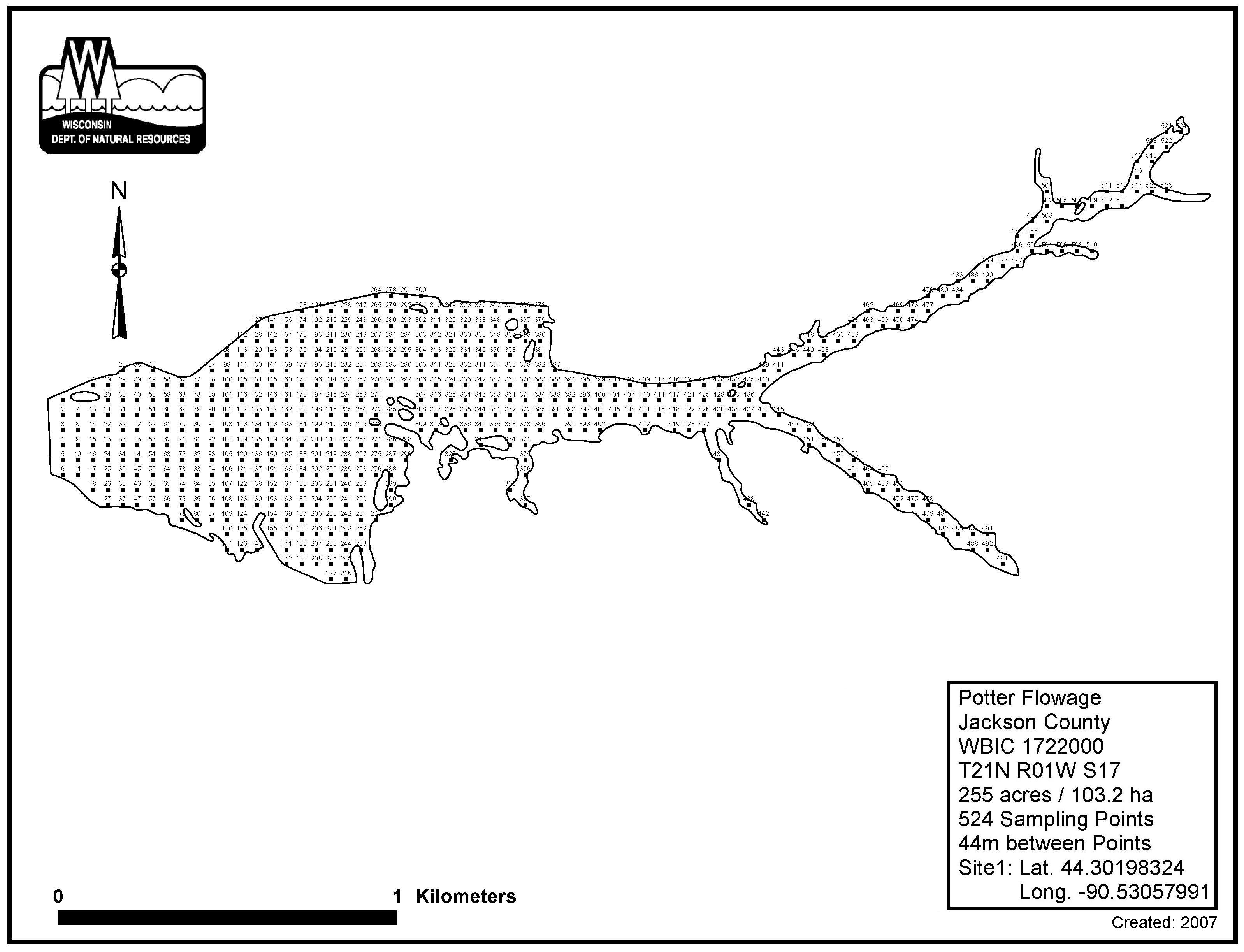 Potter Flowage, Jackson County - Aquatic Plant Sampling Map (2)(44 mpts)