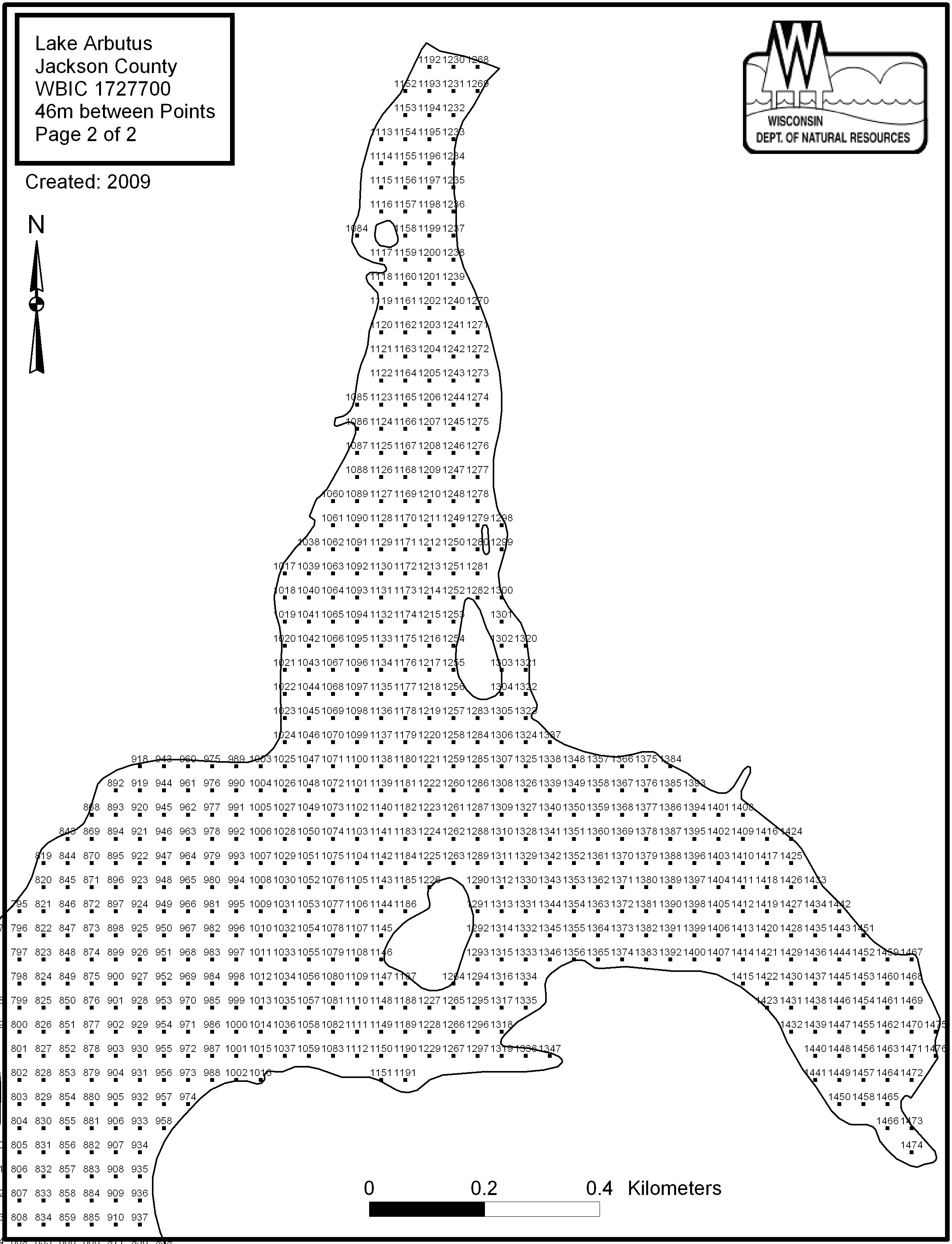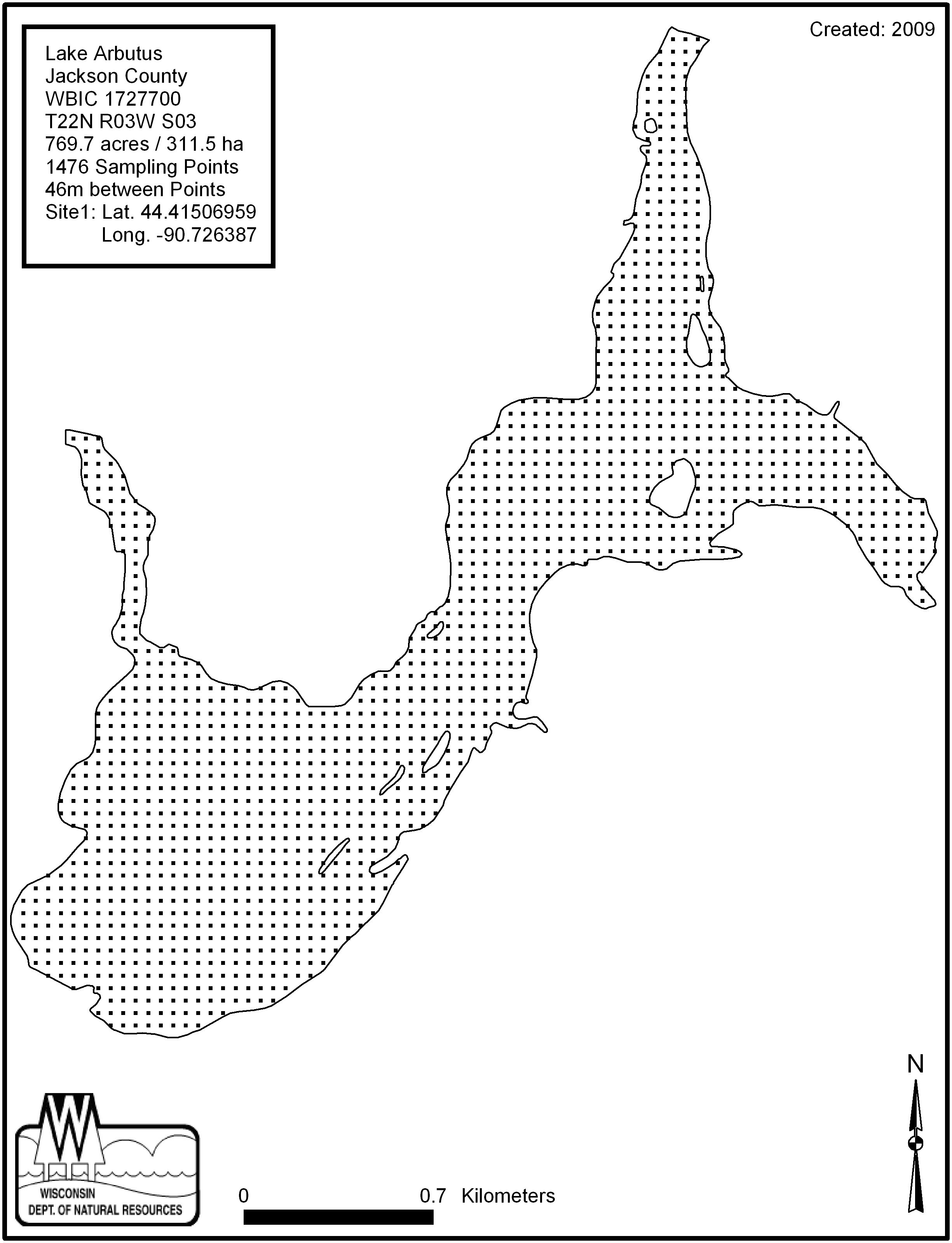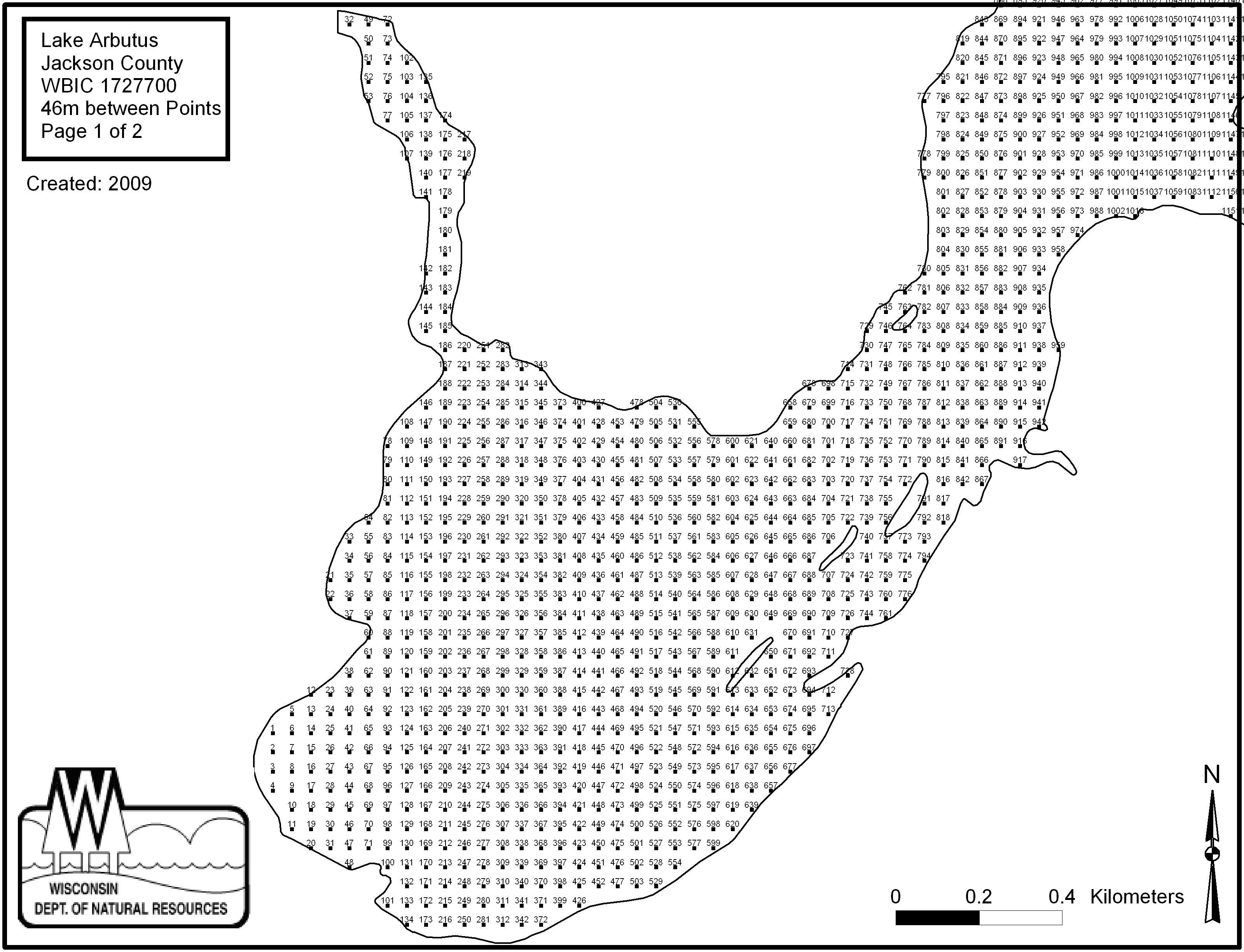 Lake Arbutus, Jackson County - Aquatic Plant Sampling Map (2)(46 mpts)