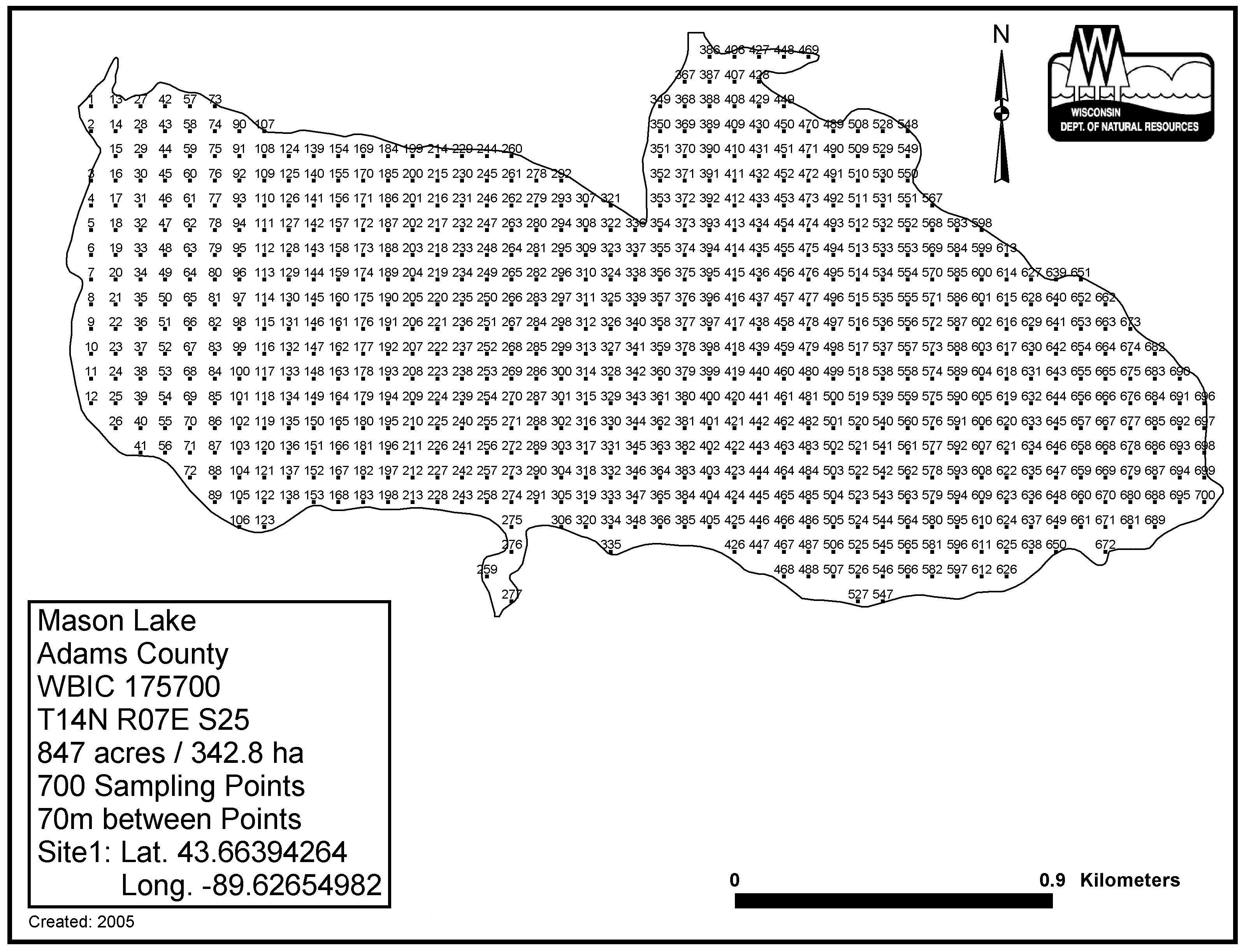 Mason Lake, Adams/Marquette County - Aquatic Plant Sampling Map (70 mpts)