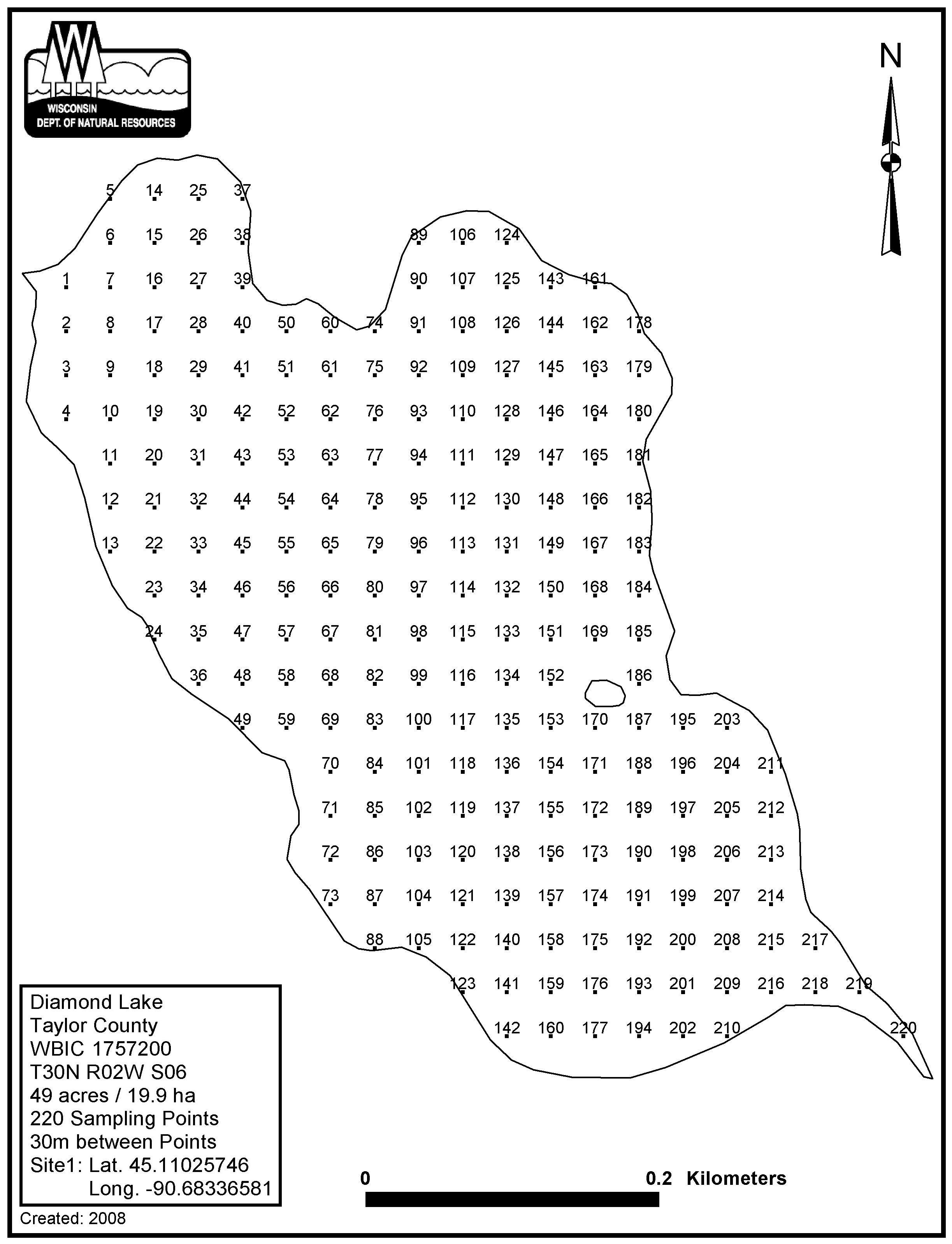 Diamond Lake, Taylor County - Aquatic Plant Sampling Map (30 mpts)