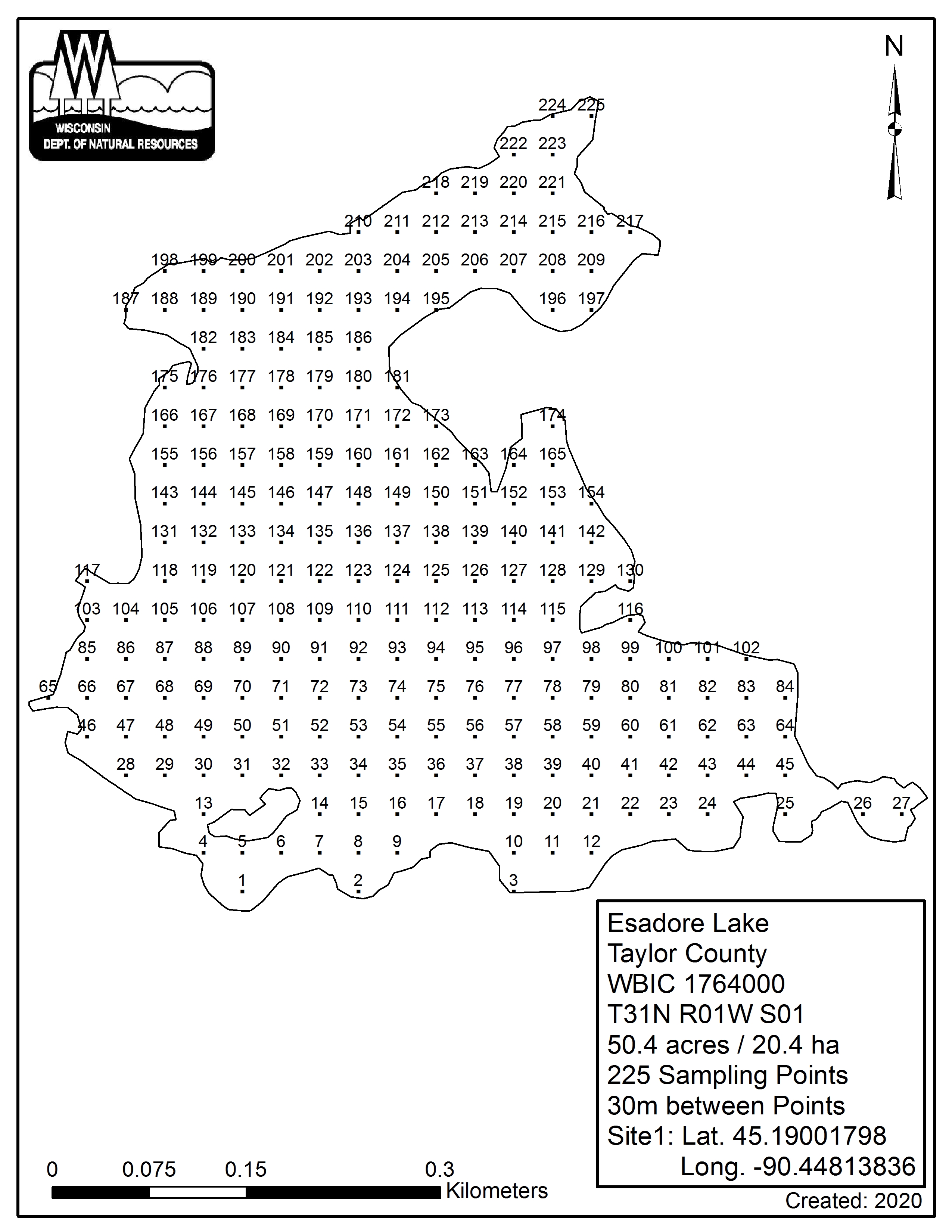 Esadore Lake, Taylor County - Aquatic Plant Sampling Map (30 mpts)