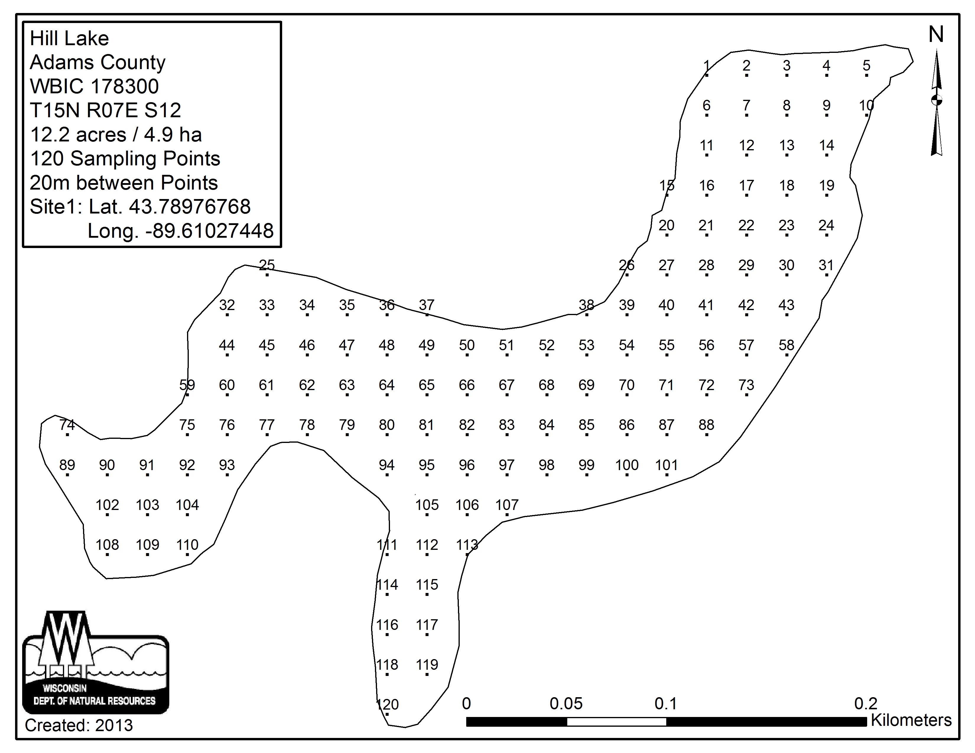 Hill Lake, Adams County - Aquatic Plant Sampling Map (20 mpts)