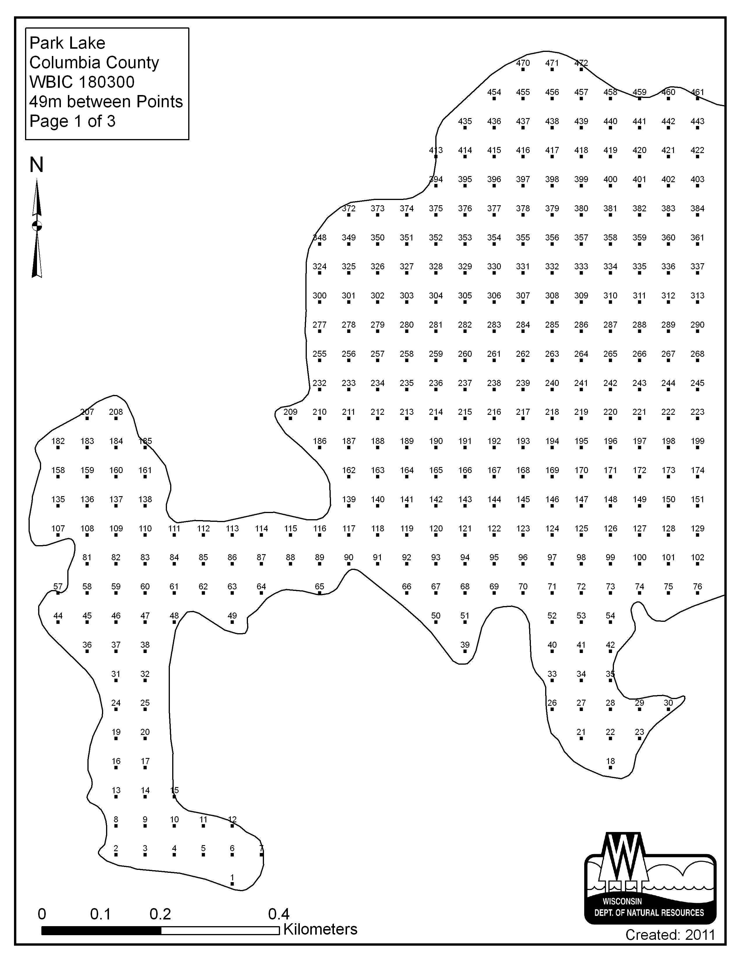 Park Lake, Columbia County - Aquatic Plant Sampling Map (49 mpts)