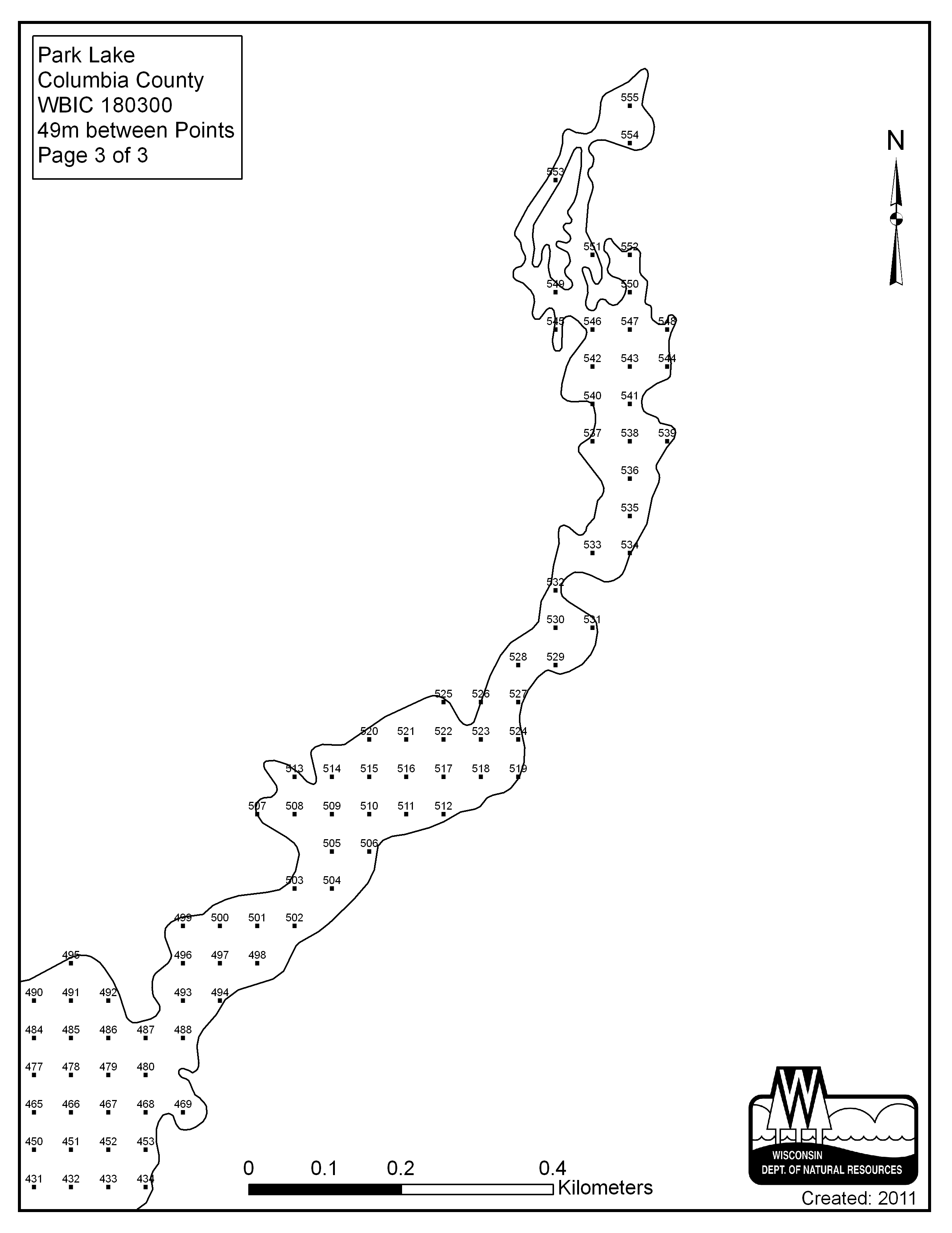 Park Lake, Columbia County - Aquatic Plant Sampling Map (3) (49 mpts)