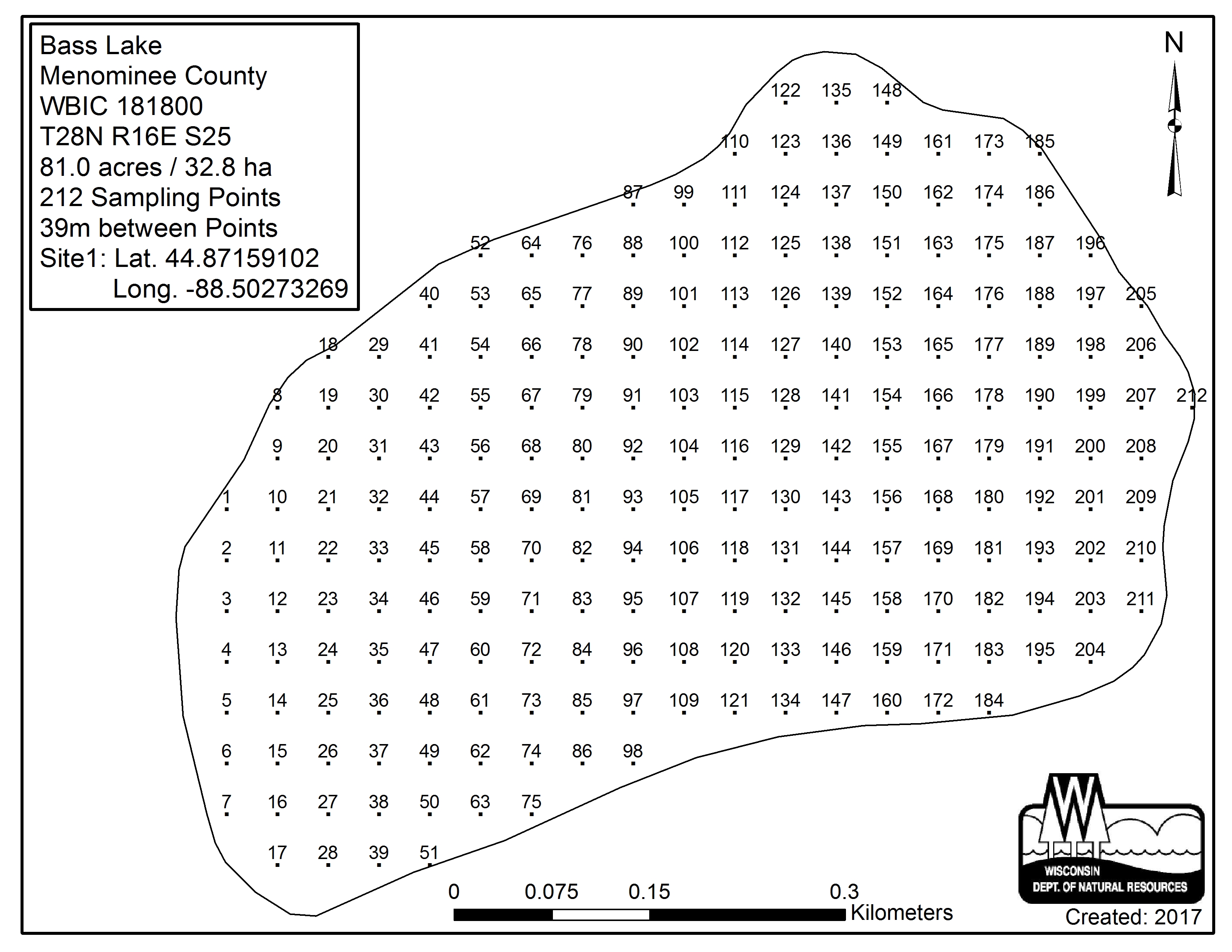 Bass Lake, Menominee County (181800) - Aquatic Plant Sampling Map (39 mpts)