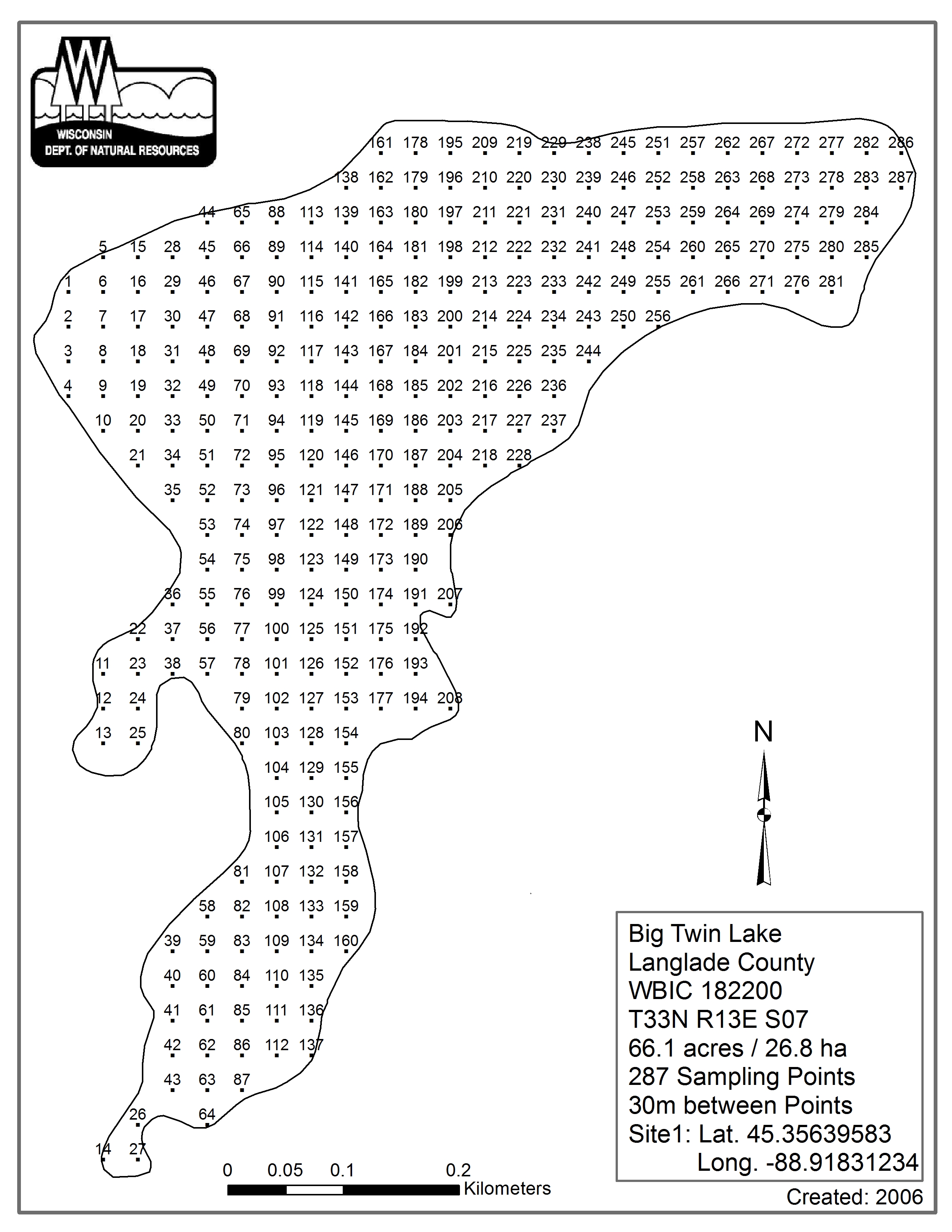 Big Twin Lake, Langlade County - Aquatic Plant Sampling Map (30 mpts)