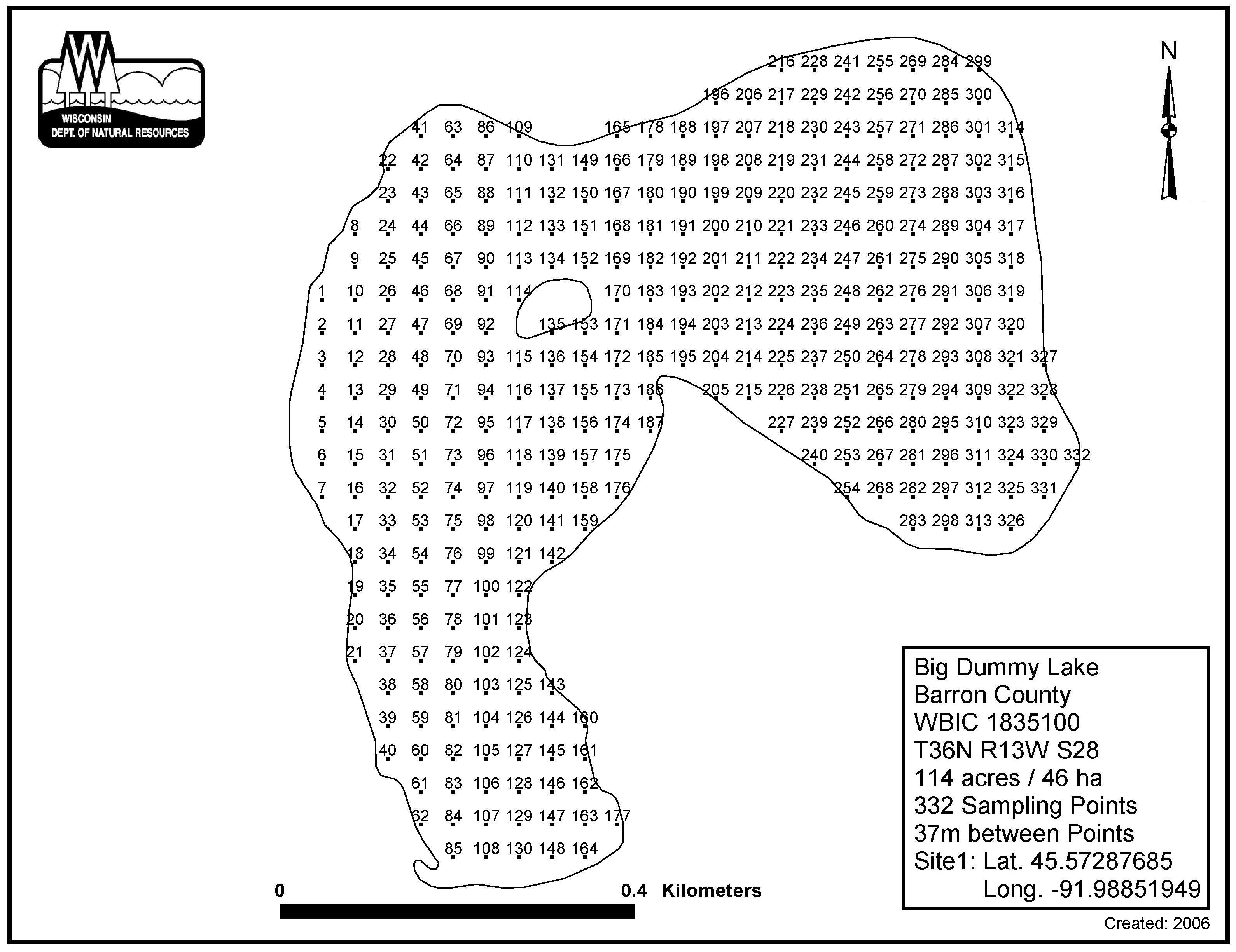 Big Dummy Lake, Barron County - Aquatic Plant Sampling Map (37 mpts)
