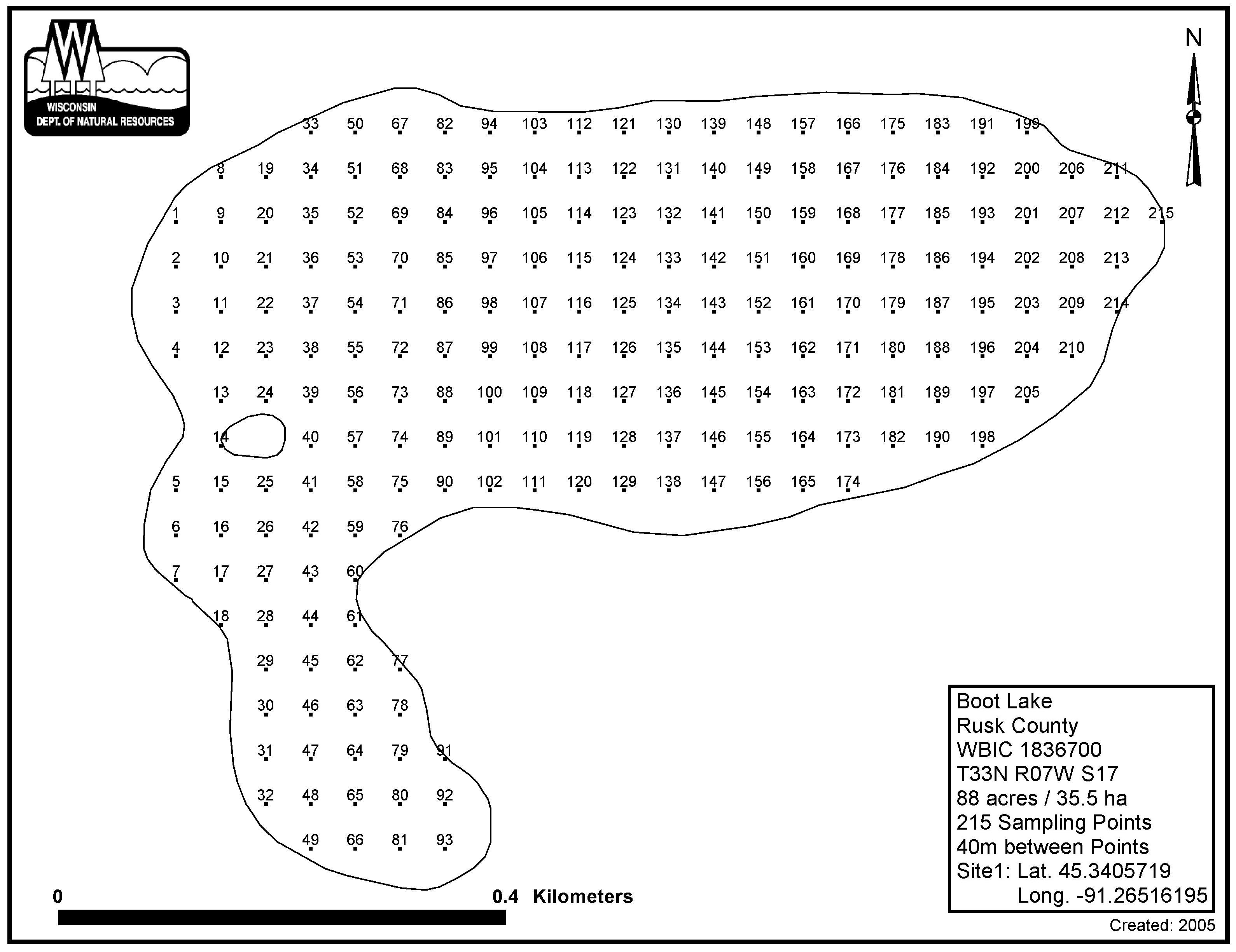 Boot Lake, Rusk County - Aquatic Plant Sampling Map (40 mpts)