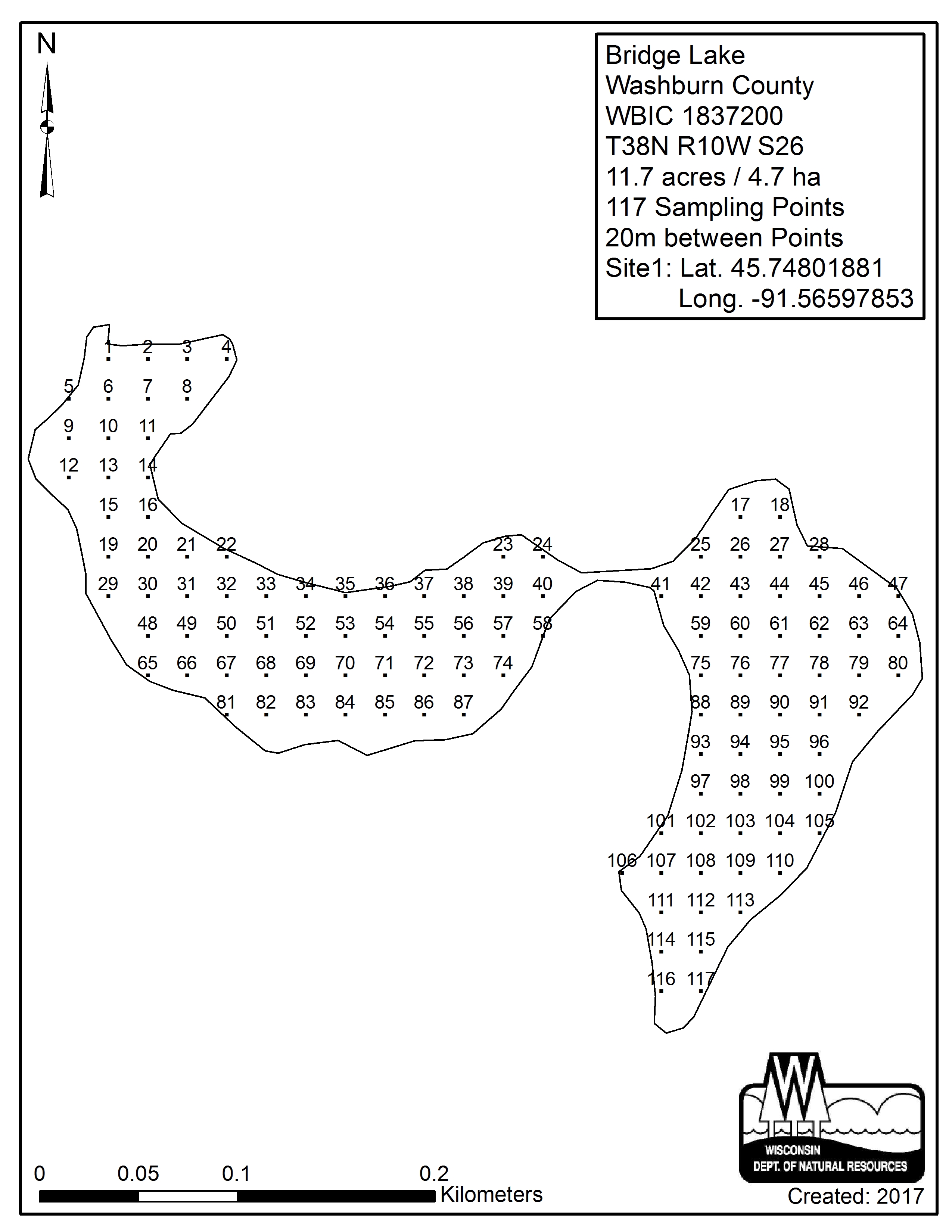 Bridge Lake, Washburn County - Aquatic Plant Sampling Map (20 mpts)