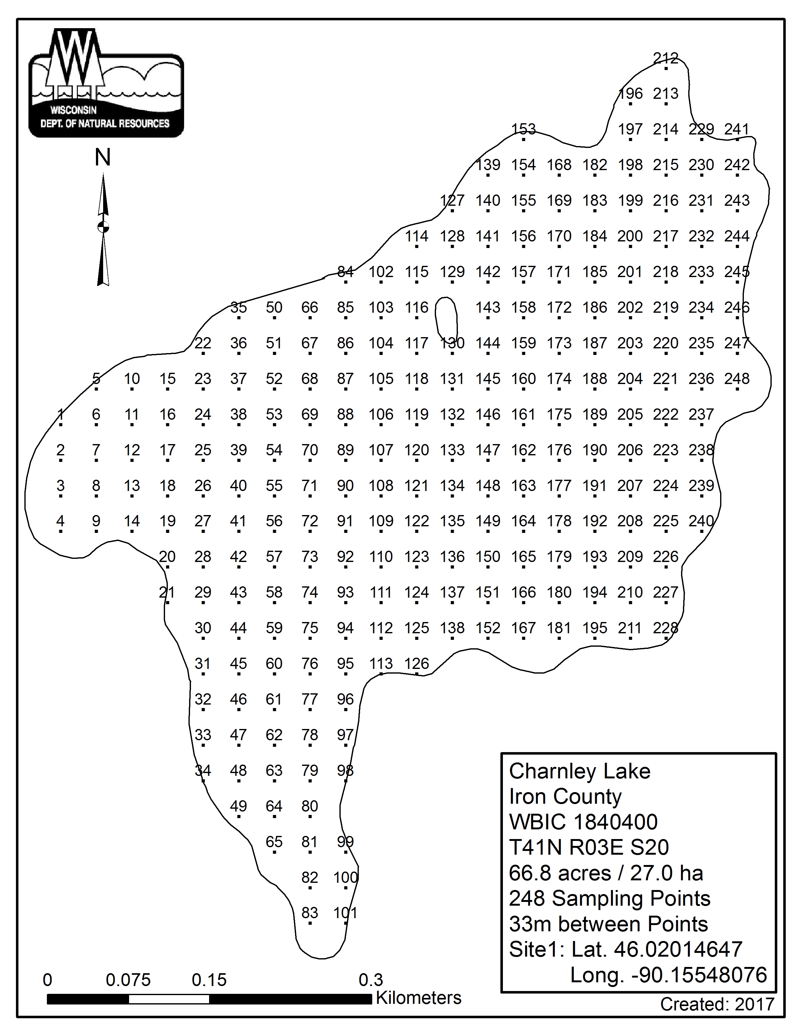 Charnley Lake, Iron County - Aquatic Plant Sampling Map (33 mpts)