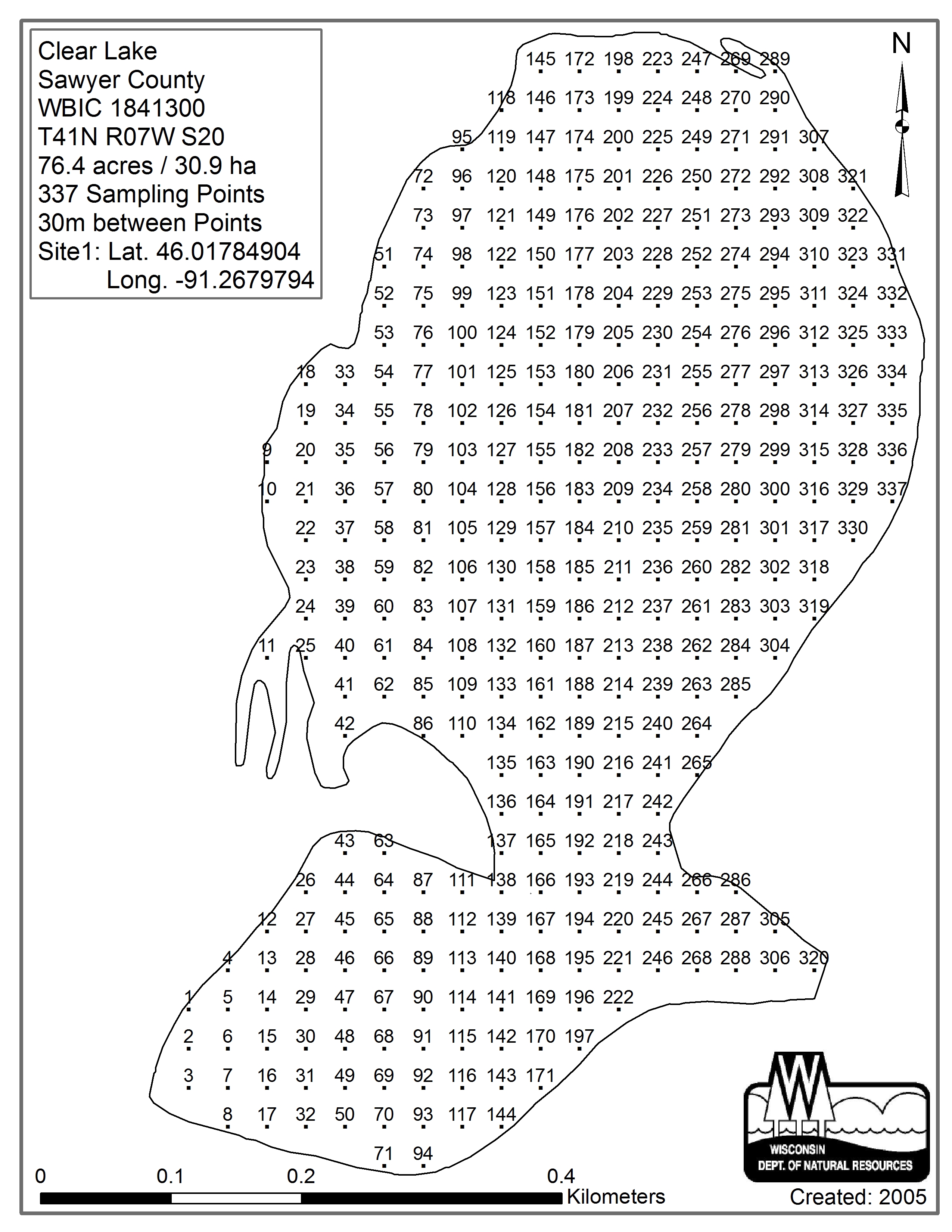 Clear Lake, Sawyer County (1841300) - Aquatic Plant Sampling Map (30 mpts)