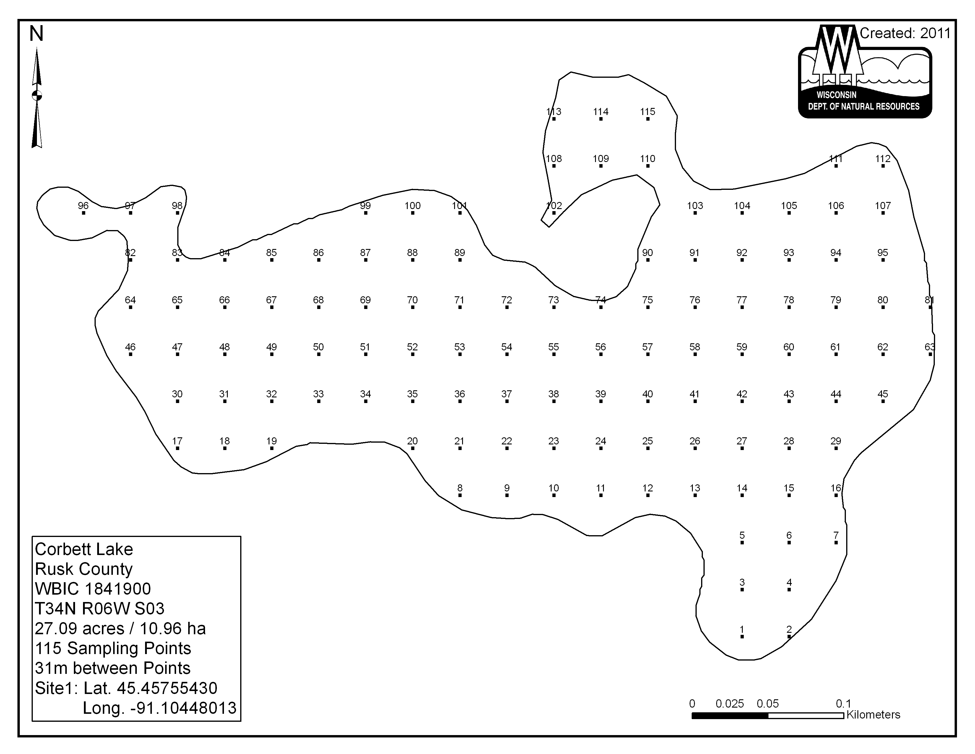 Corbett Lake, Rusk County - Aquatic Plant Sampling Map (31 mpts)