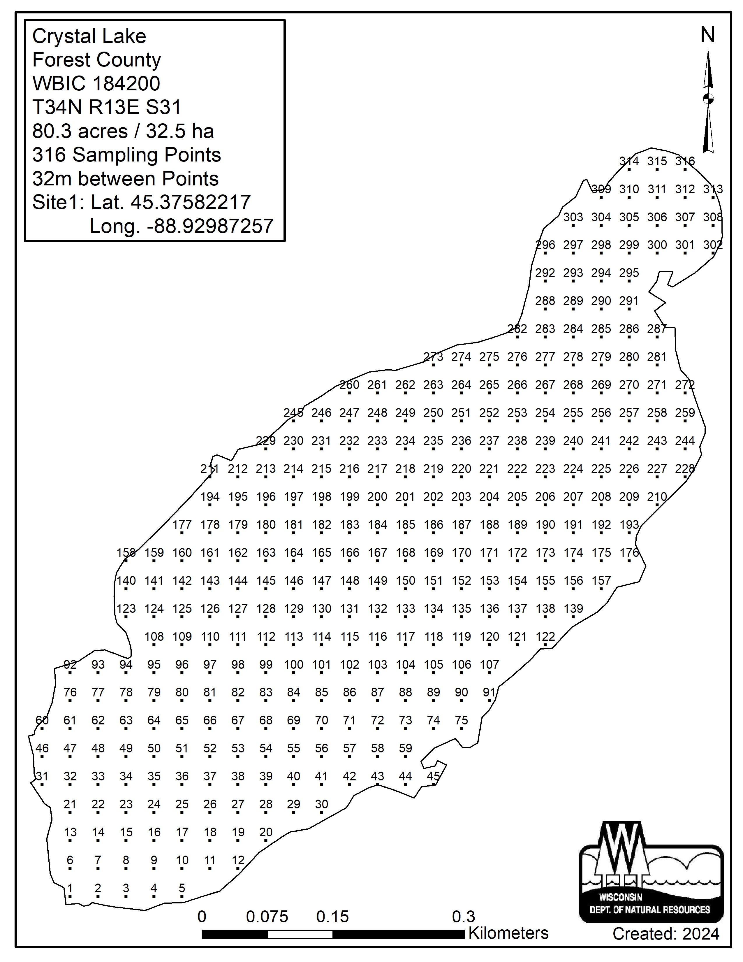 Crystal Lake, Forest County - Aquatic Plant Sampling Map (32 mpts)