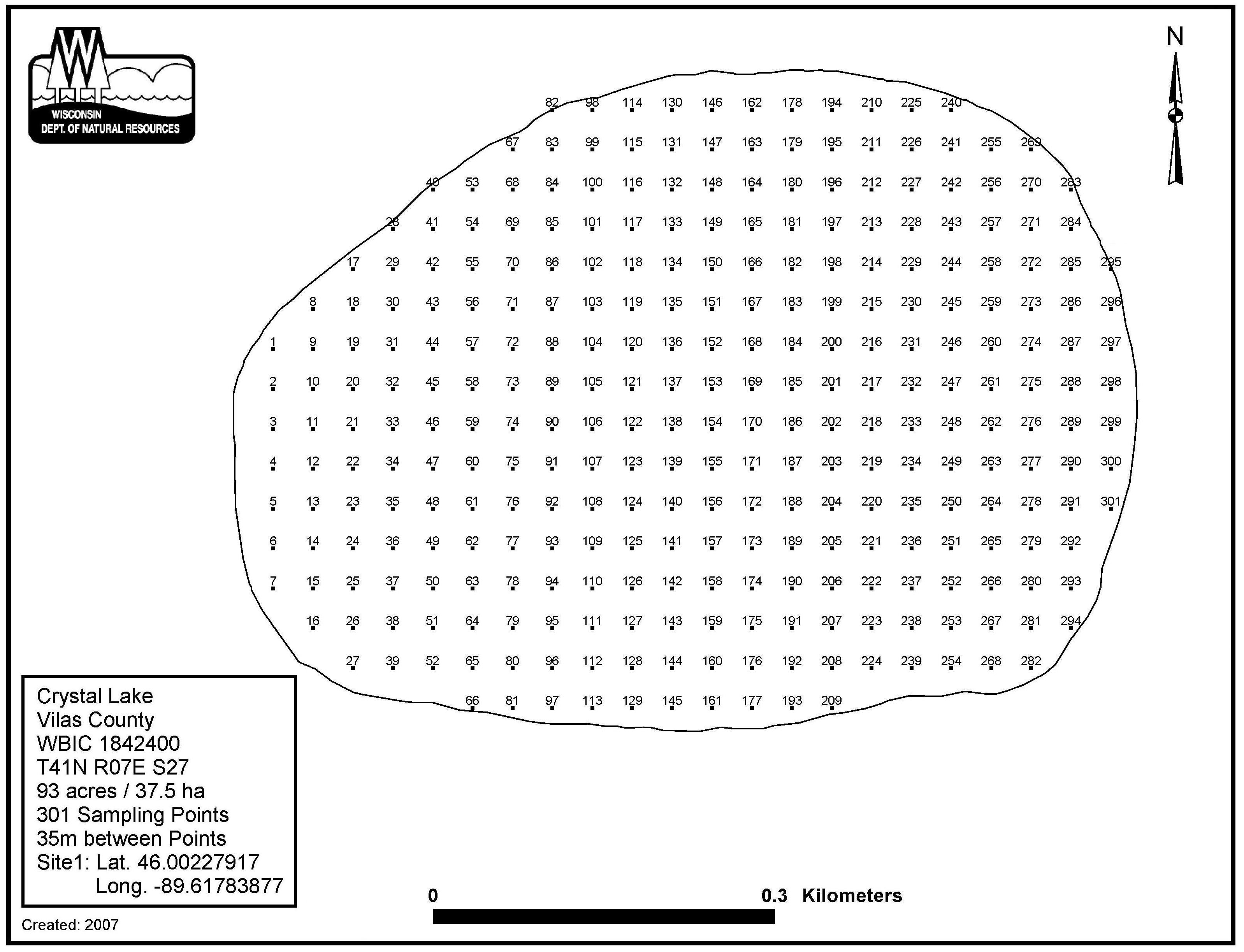 Crystal Lake, Vilas County - Aquatic Plant Sampling Map (35 mpts)