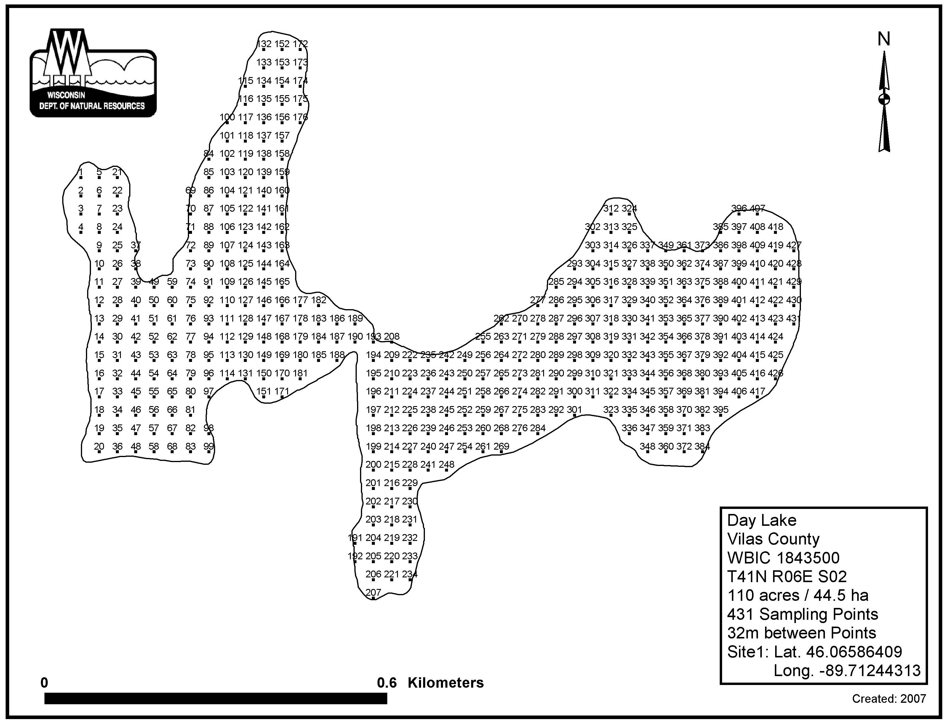 Day Lake, Vilas County - Aquatic Plant Sampling Map (32 mpts)