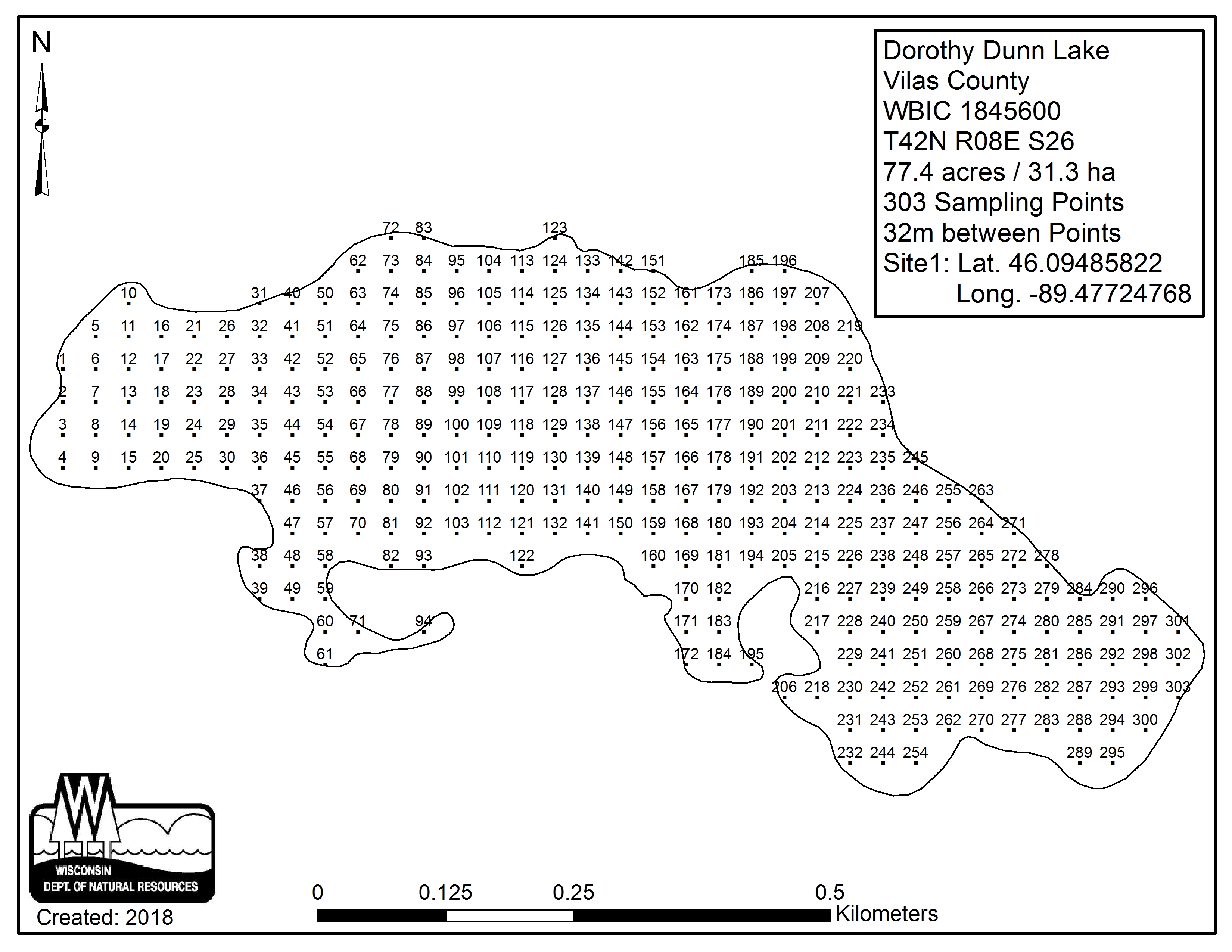 Dorothy Dunn Lake, Vilas County - Aquatic Plant Sampling Map (32 mpts)