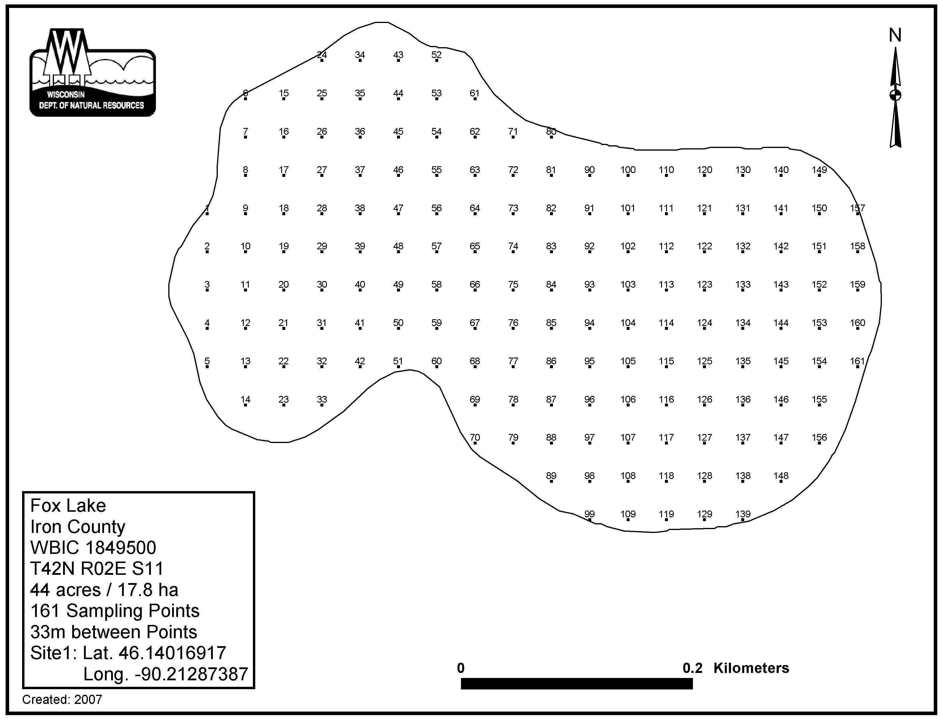 Fox Lake, Iron County - Aquatic Plant Sampling Map (33 mpts)