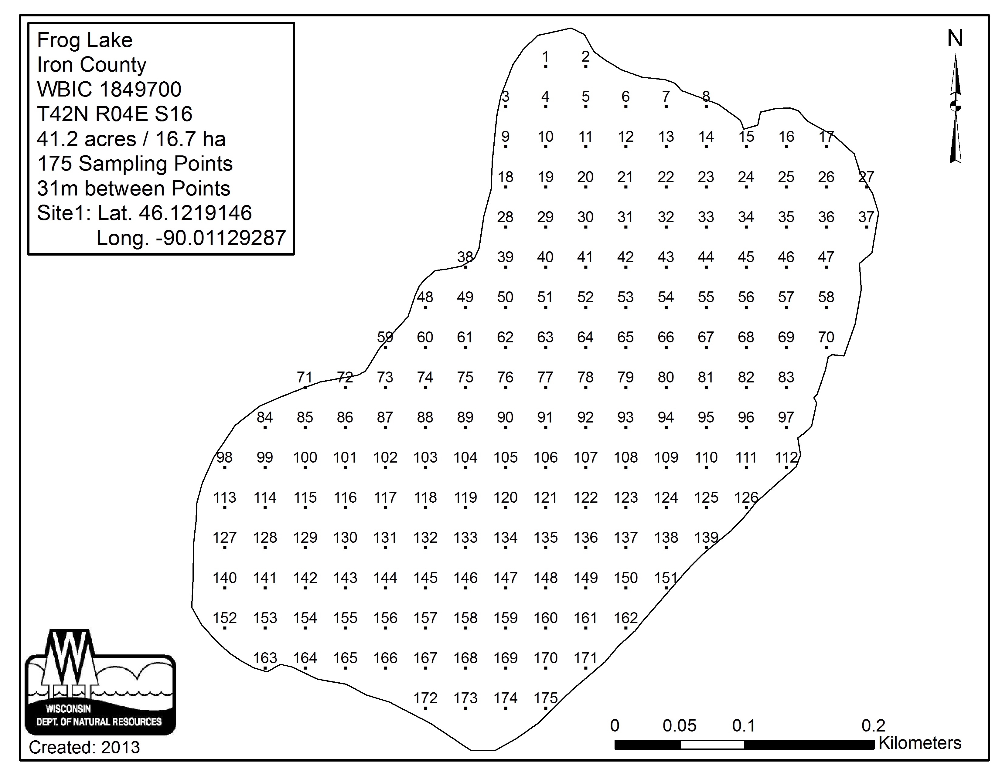 Frog Lake, Iron County - Aquatic Plant Sampling Map (31 mpts)