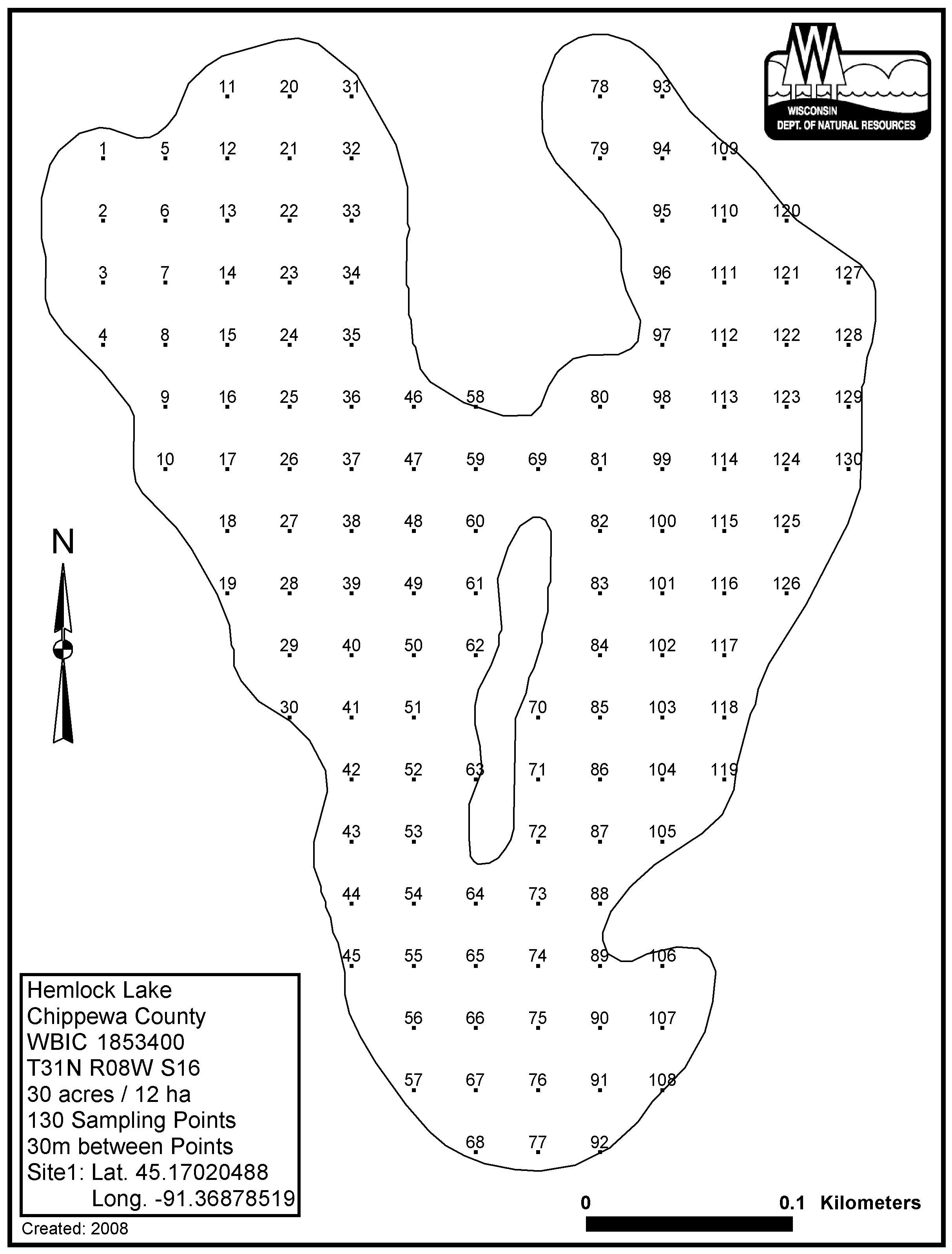 Hemlock Lake, Chippewa County - Aquatic Plant Sampling Map (30 mpts)