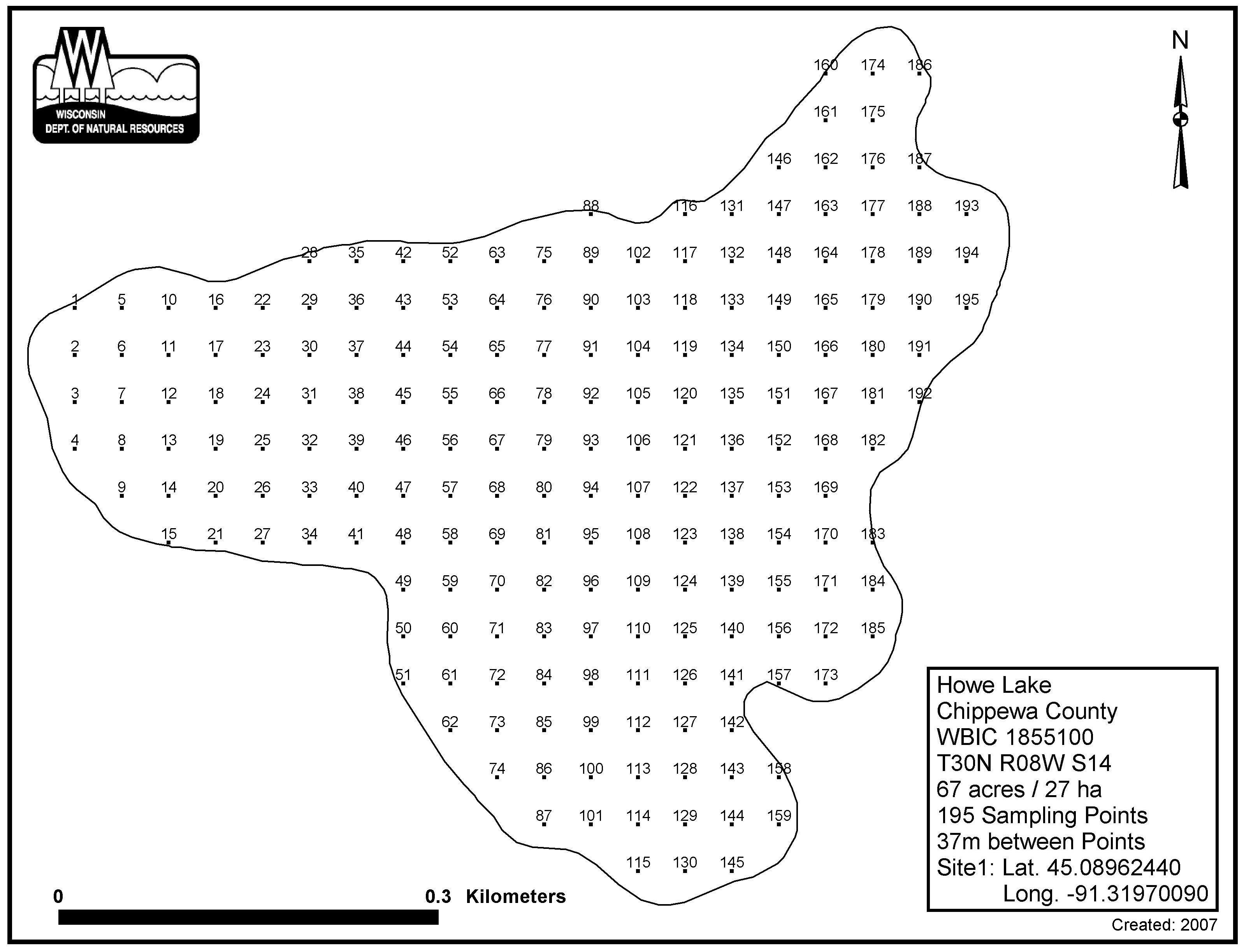 Howe Lake, Chippewa County - Aquatic Plant Sampling Map (37 mpts)