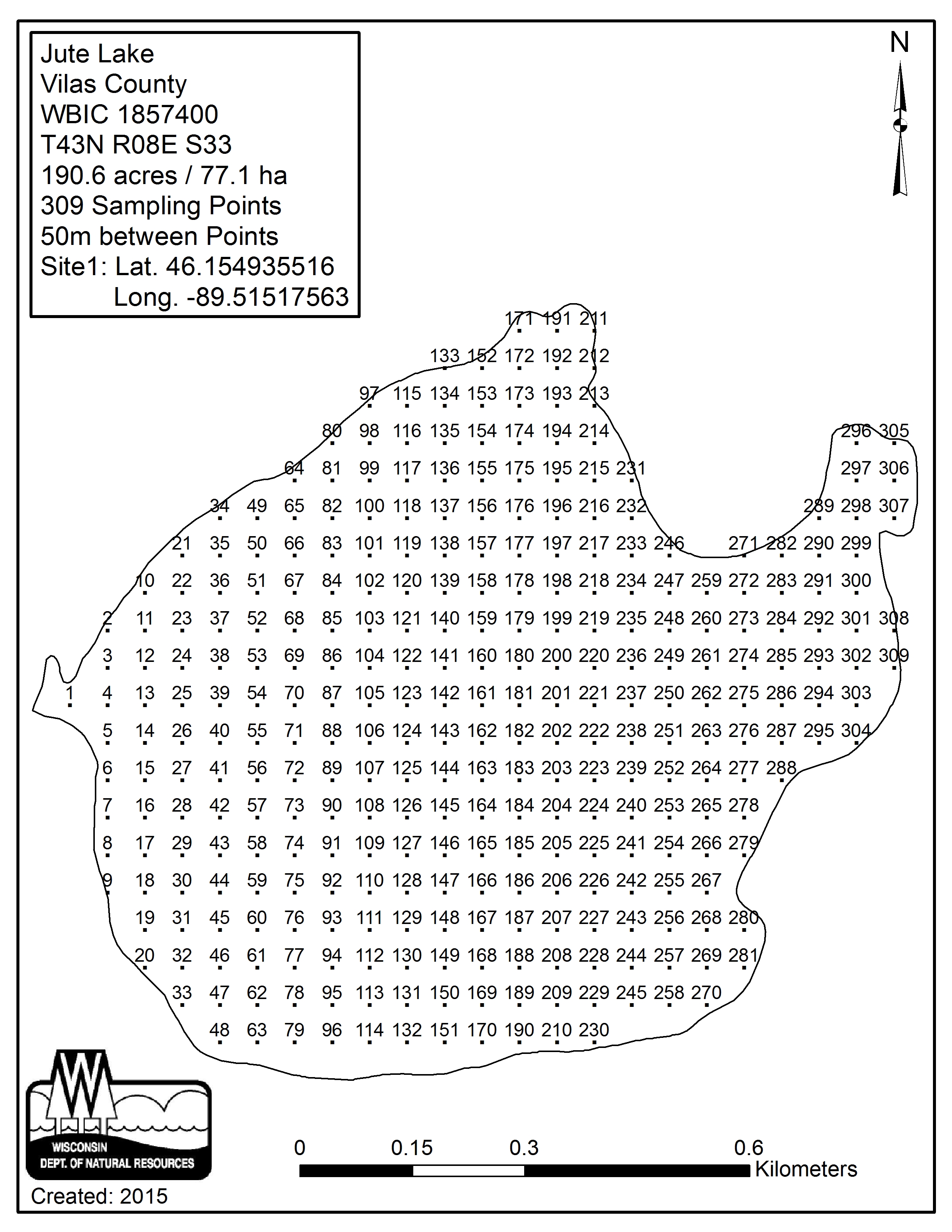 Jute Lake, Vilas County - Aquatic Plant Sampling Map (50 mpts)