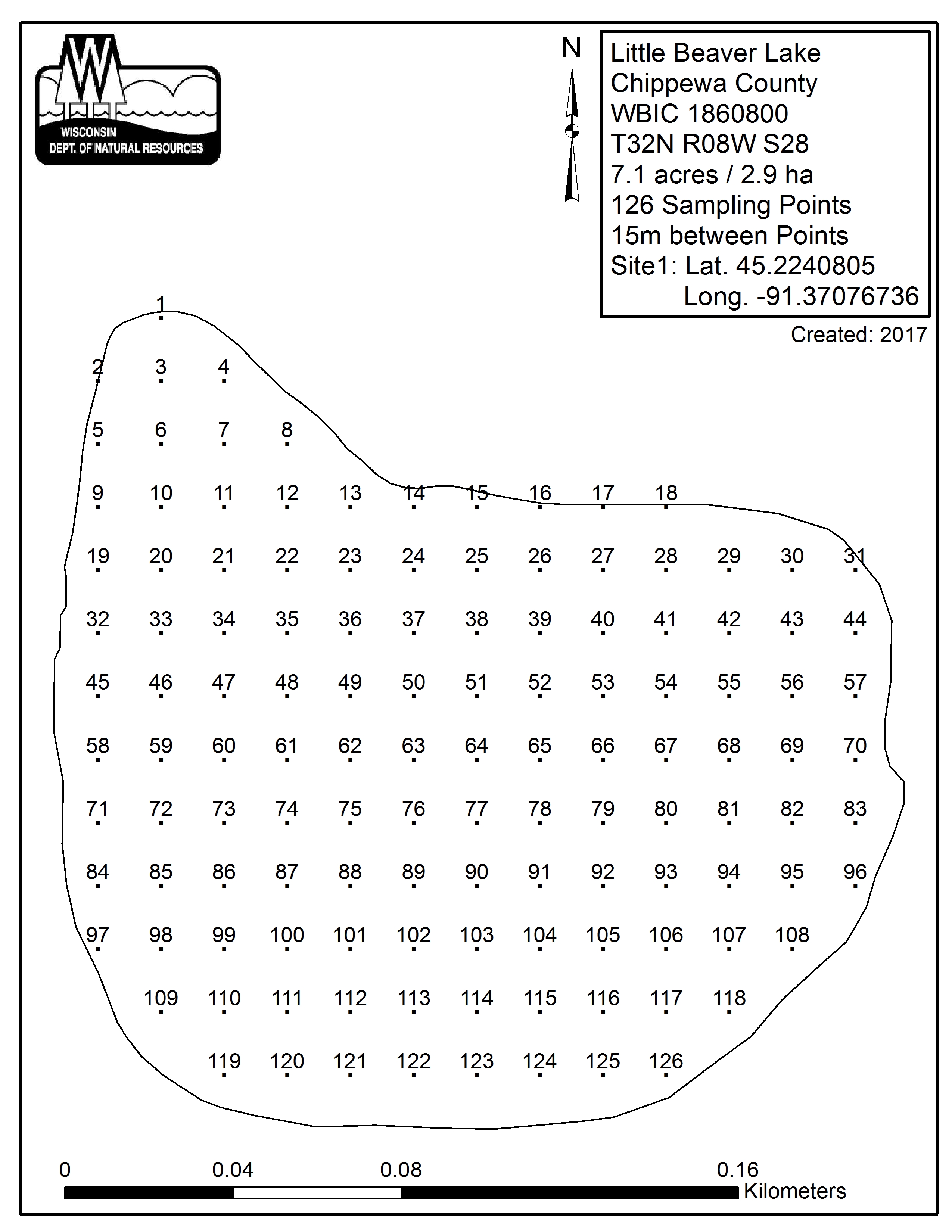 Little Beaver Lake, Chippewa County - Aquatic Plant Sampling Map (15 mpts)