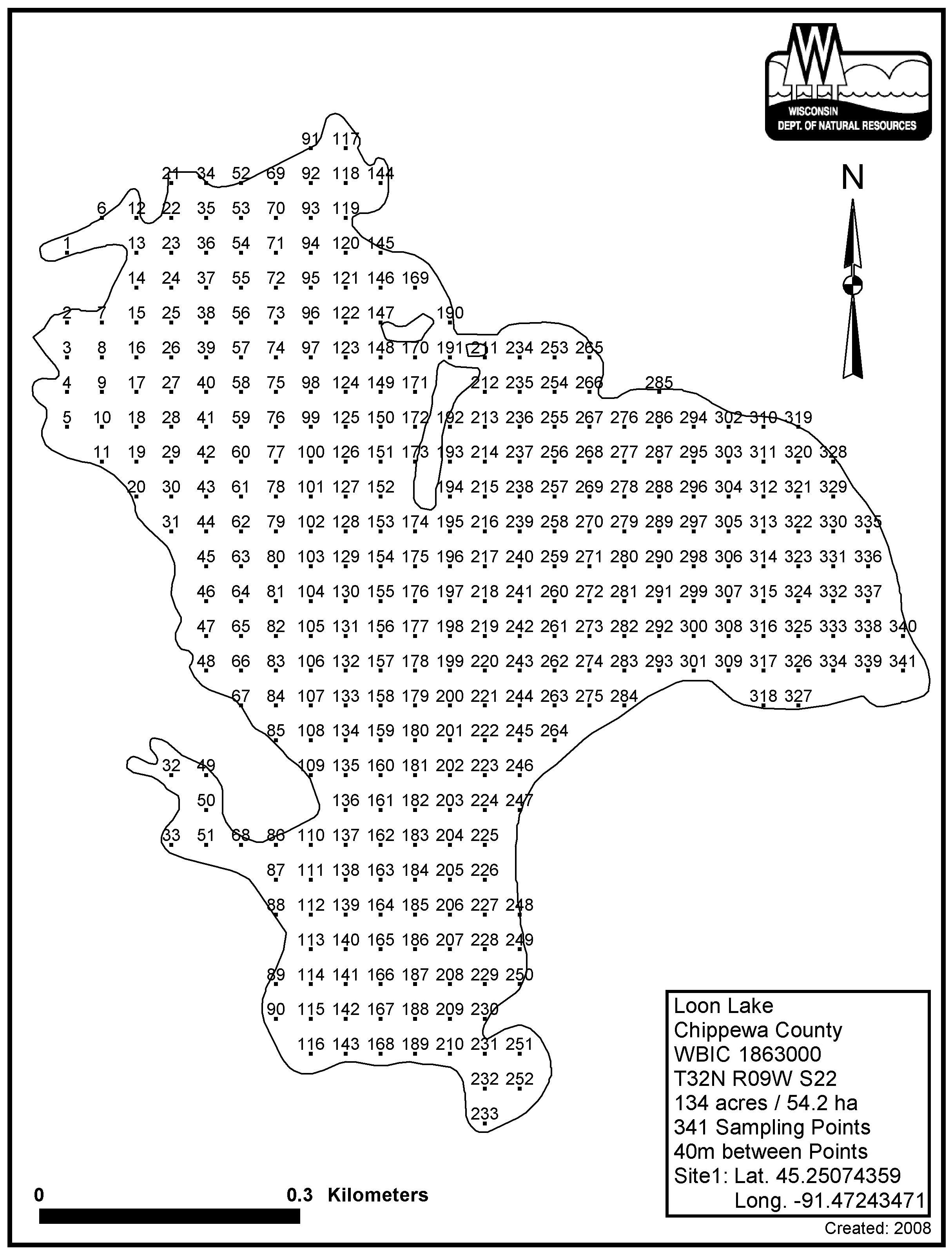 Loon Lake, Chippewa County - Aquatic Plant Sampling Map (40 mpts)