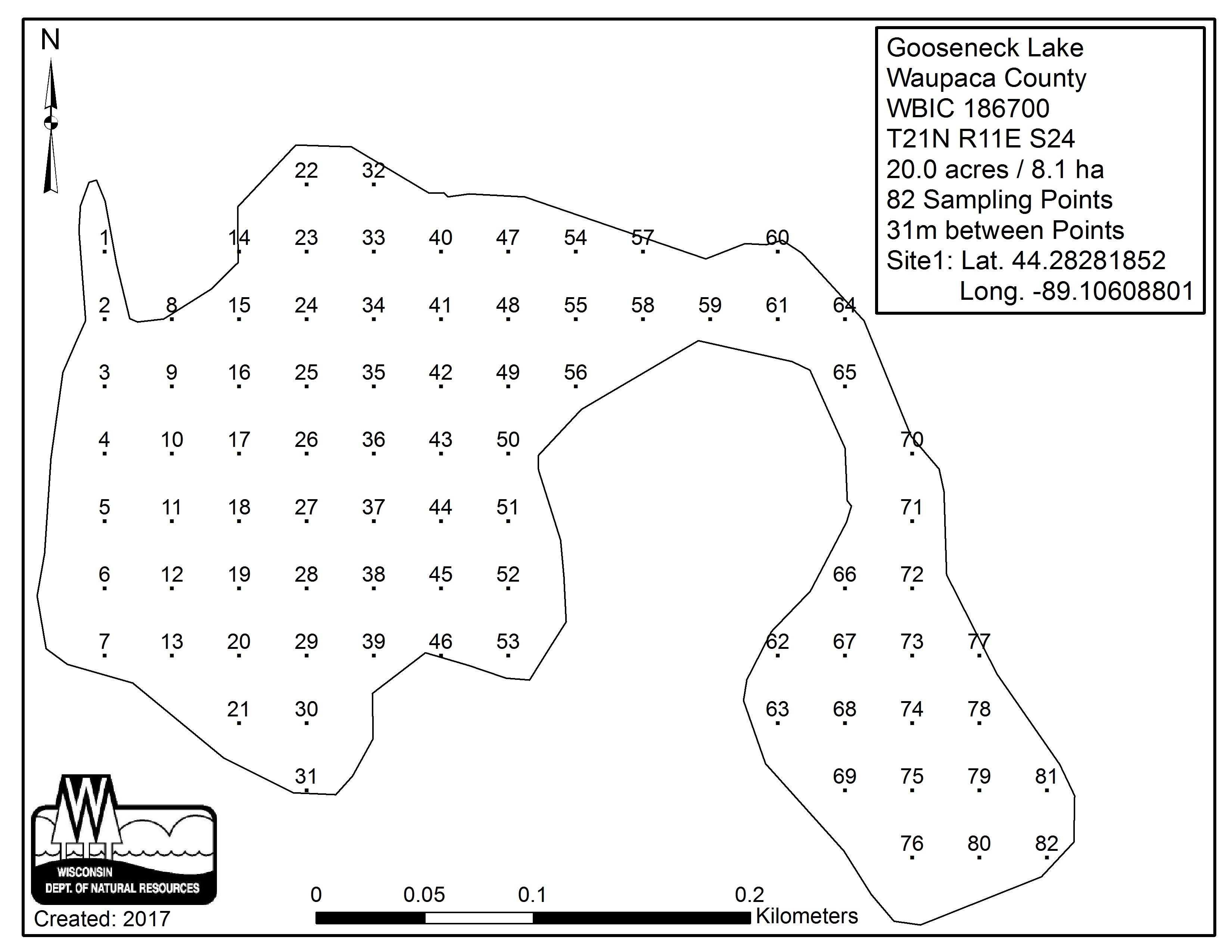 Gooseneck Lake, Waupaca County - Aquatic Plant Sampling Map (31 mpts)