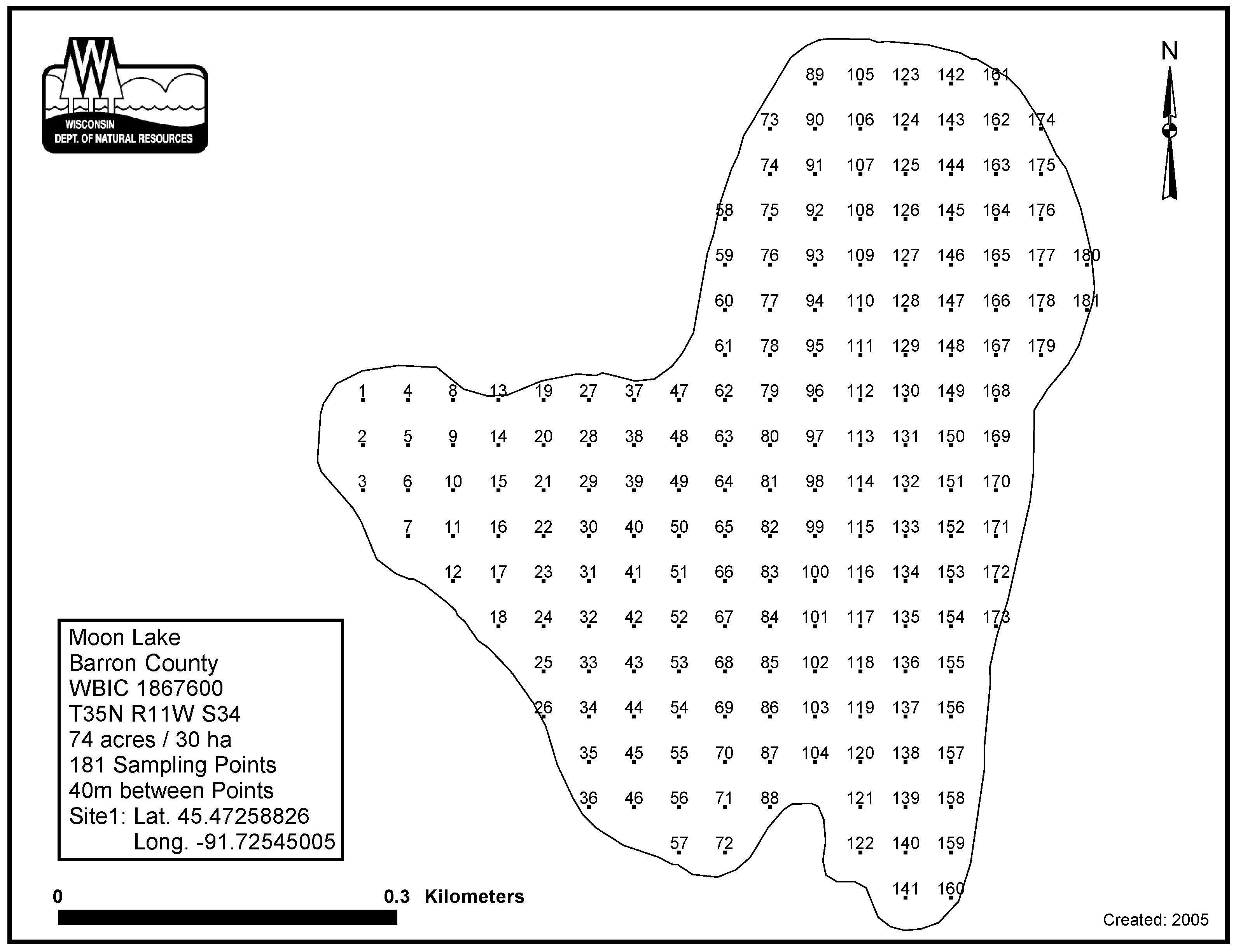 Moon Lake, Barron County - Aquatic Plant Sampling Map (40 mpts)