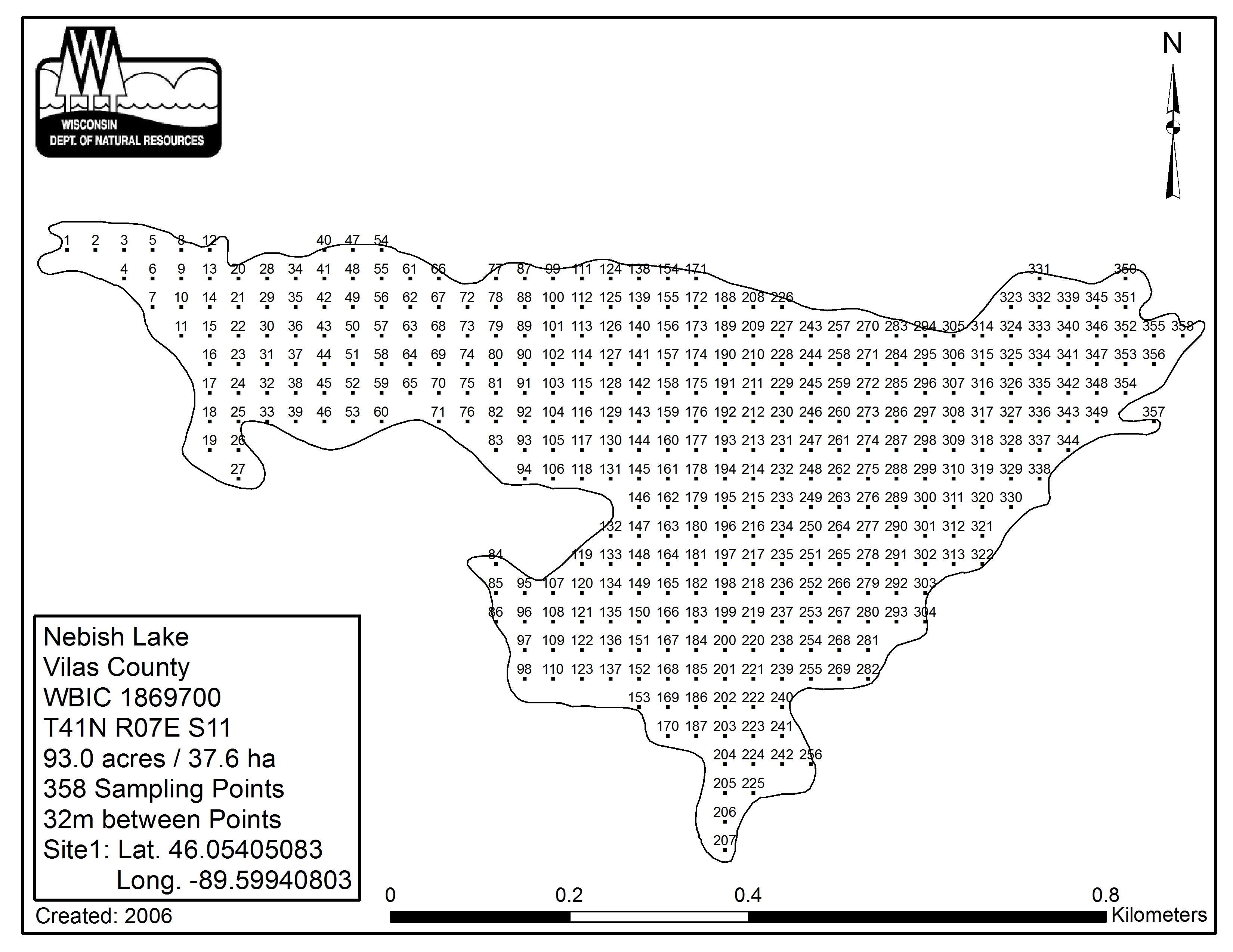 Nebish Lake, Vilas County - Aquatic Plant Sampling Map (32 mpts)