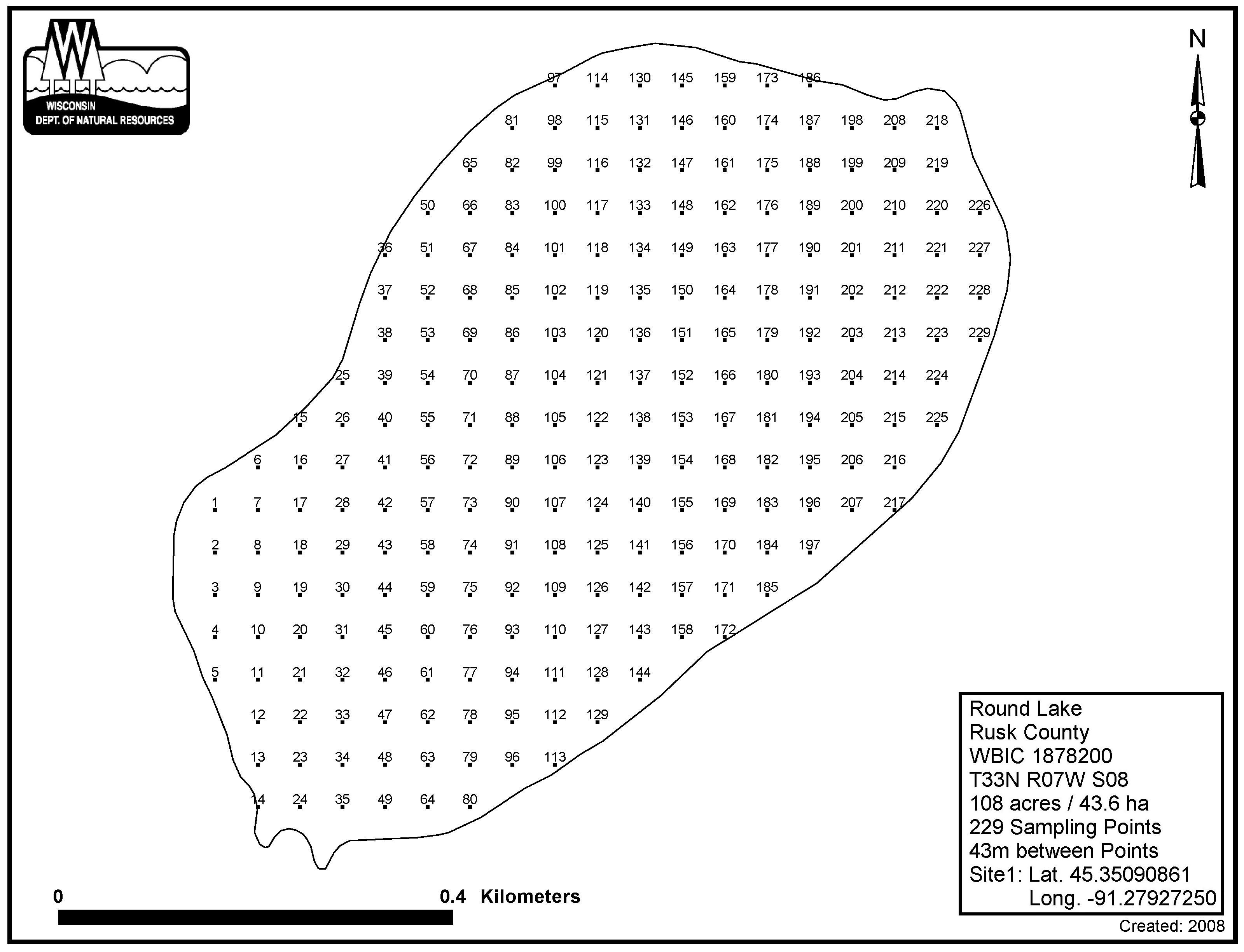 Round Lake, Rusk County - Aquatic Plant Sampling Map (43 mpts)